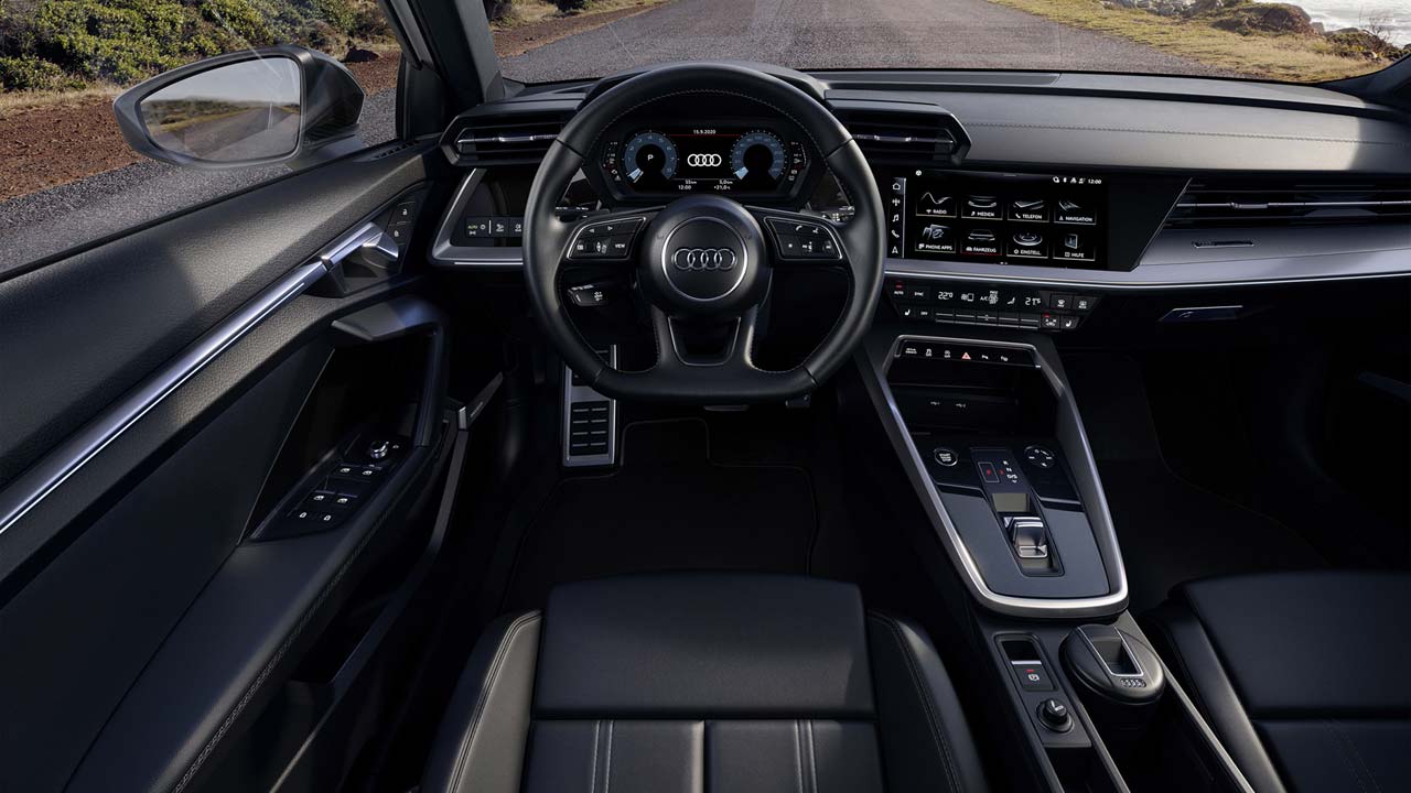 Στο βασικό εξοπλισμό του Audi A3 Sportback 30 g-tron περιλαμβάνονται προβολείς LED, ψηφιακό ταμπλό οργάνων, οθόνη αφής 10,1 ιντσών, πολυλειτουργικό δερμάτινο τιμόνι και τα συστήματα υποβοήθησης οδηγού Audi pre sense front, lane departure warning, swerve assist and turn assist. Μερικές από τις προαιρετικές επιλογές εξοπλισμού είναι προβολείς matrix LED με ψηφιακά φώτα ημέρας, αυτόματος κλιματισμός τριών ζωνών, head-up οθόνη, σπορ καθίσματα με ενσωματωμένα προσκέφαλα, πανοραμική γυάλινη ηλιοροφή και adaptive cruise assist, το οποίο υποστηρίζει τον οδηγό με διαμήκη και πλευρική καθοδήγηση. Τρεις εξωτερικές και τρεις εσωτερικές γραμμές εξοπλισμού, οι οποίες μπορούν να συνδυαστούν ελεύθερα, παρέχουν υψηλό επίπεδο εξατομίκευσης.