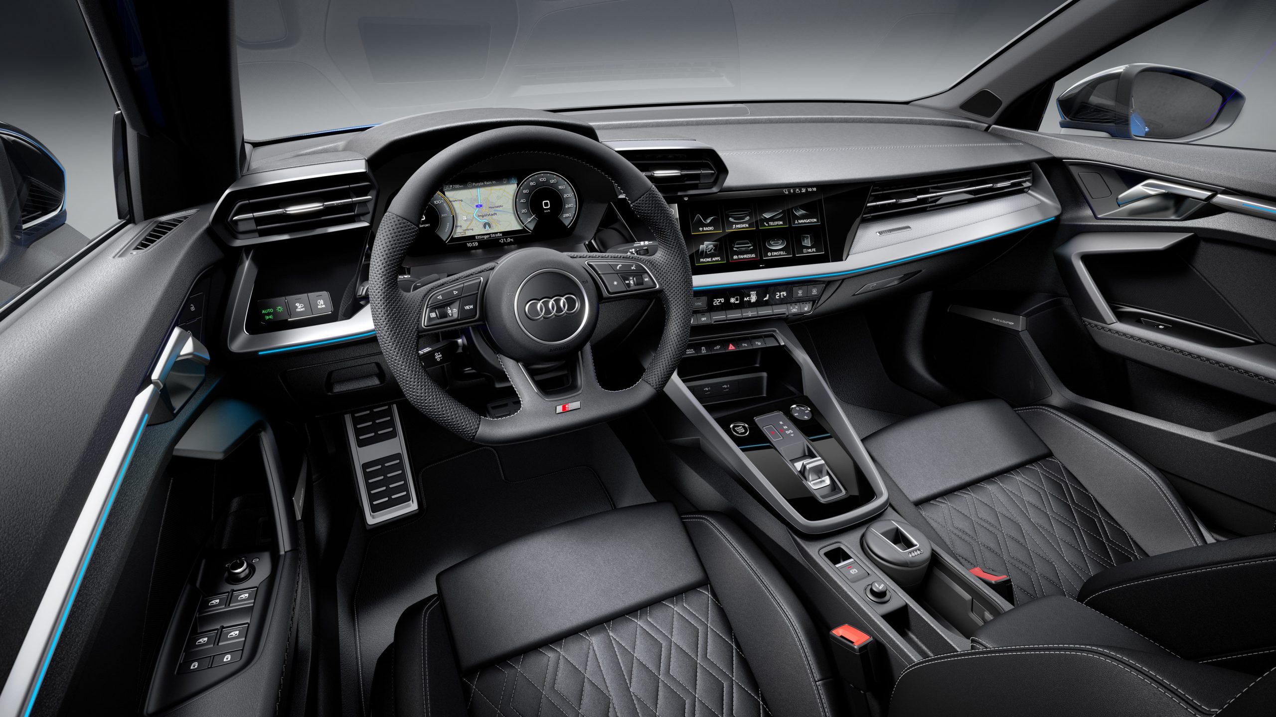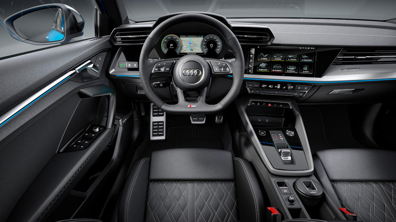 Το A3 Sportback 40 TFSI e, με μήκος 4,34 μέτρα, διατηρεί τα ίδια εξωτερικά και εσωτερικά διακοσμητικά στοιχεία που χαρακτηρίζουν όλη τη γκάμα του νέου Α3. Ειδικά για αυτήν την έκδοση, υβριδικές λειτουργίες και οθόνες έχουν προστεθεί για τη σωστή ενημέρωση του οδηγού. Ένας μετρητής ισχύος στο σύμπλεγμα ψηφιακών οργάνων – ή στο προαιρετικό Audi virtual cockpit – εμφανίζει τη διαθέσιμη ισχύ, την κατάσταση του κινητήριου συστήματος, την ανάκτηση ενέργειας, την κατάσταση φόρτισης της μπαταρίας και την αυτονομία, ανά πάσα στιγμή. Η κεντρική οθόνη MMI με διαγώνιο στις 10,1 ίντσες παρουσιάζει με κατανοητό τρόπο τις ροές ενέργειας.
