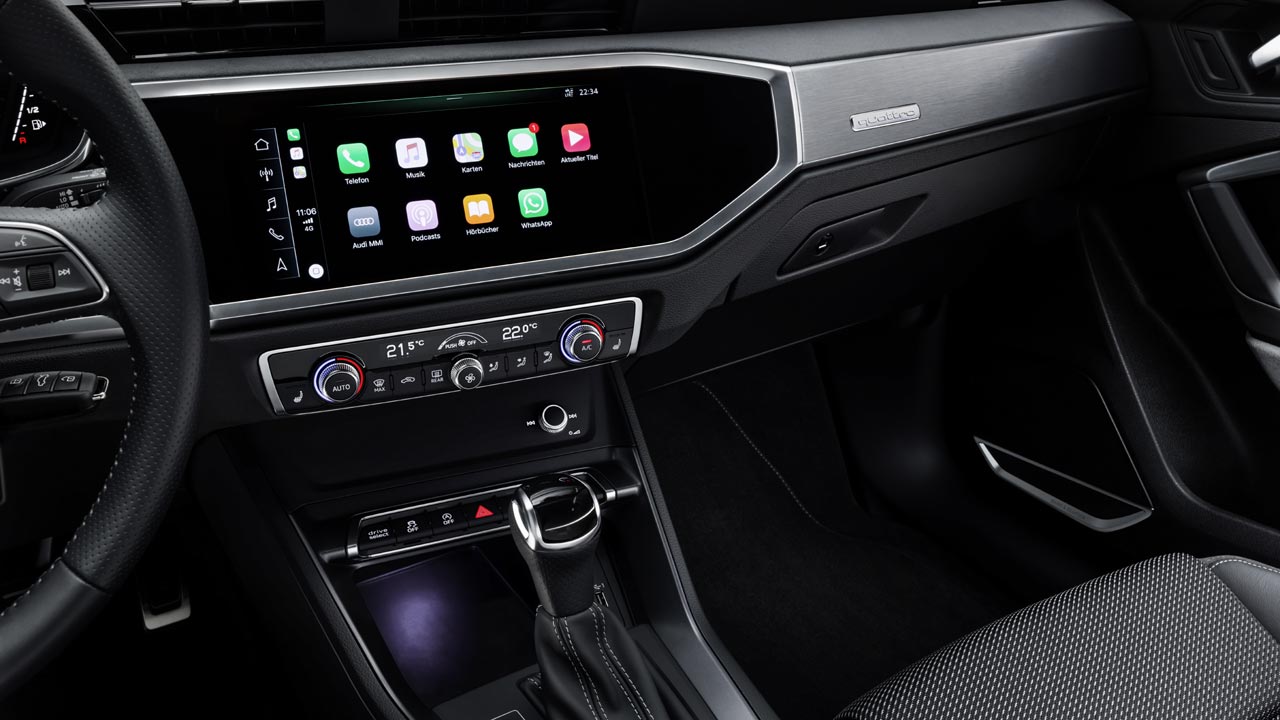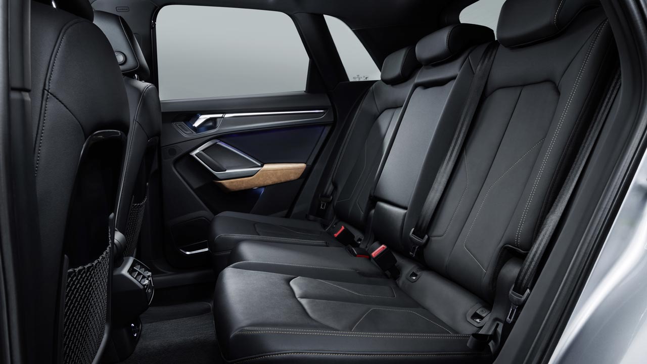 Εντελώς ανασχεδιασμένο είναι και το εσωτερικό του νέου Audi Q3. Το ταμπλό διαιρείται στα δύο, με το άνω μέρος του να περιλαμβάνει τους αεραγωγούς και το κάτω το black-panel με την ψηφιακή οθόνη αφής για το σύστημα πολυμέσων MMI. Ο οδηγοκεντρικός χαρακτήρας του εσωτερικού, τονίζεται από την κλίση 10 μοιρών του ταμπλό προς τον οδηγό, ενώ ο ψηφιακός πίνακας οργάνων των 10.25 ιντσών είναι στα highligts του. Τα υλικά στο εσωτερικό είναι από το… πάνω ράφι, ενώ το αίσθημα πολυτέλειας τονίζεται και από την επένδυση αλκαντάρα στο ταμπλό αλλά και στα πάνελ των θυρών. Και στην ευρυχωρία όμως, το νέο Audi Q3 τα καταφέρνει μια χαρά αφού η αύξηση του μεταξονίου κατά 77 χλστ. (πλέον είναι στα 2.680 χλστ.) εξασφάλισε καλύτερη εκμετάλλευση χώρων στο εσωτερικό. Επιπροσθέτως, χάρη στο στάνταρ συρόμενο πίσω κάθισμα κατά 150 χιλιοστά, διαιρούμενο σε αναλογία 40/20/40 και με ρυθμιζόμενη κλίση πλάτης, η πρακτικότητα αυξάνεται κατακόρυφα. Το ίδιο ισχύει και για τον χώρο αποσκευών, ο οποίος είναι στα 530 ή 675 λίτρα (ανεξαρτήτως θέσης του καθίσματος) και με την αναδίπλωση της πίσω σειράς φτάνει στα 1.525 λίτρα. Φυσικά, ο εξοπλισμός του νέου Audi Q3 είναι κορυφαίος, καθώς ακόμη και στην έκδοση με το στάνταρ MMI touch υπάρχει ψηφιακός πίνακας οργάνων με οθόνη διαγώνιου 10,25 ιντσών, και οθόνη αφής 8,8 ιντσών που βρίσκεται στο κέντρο του ταμπλό. Στην κορυφαία έκδοση εξοπλισμού MMI navigation plus η οθόνη είναι 10,1 ίντσες και προαιρετικά ο πίνακας οργάνων 10,25 ιντσών μπορεί να αναβαθμιστεί στις 12,5 ίντσες.