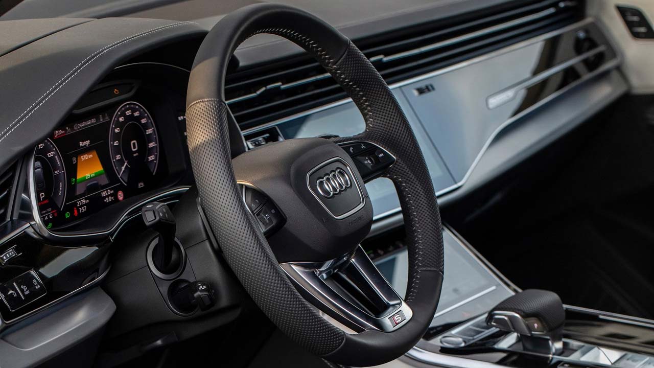 Όσον αφορά το εσωτερικό του Audi Q7 TFSI e quattro, εκεί η ψηφοποίηση έχει τον πρώτο λόγο! Ο πίνακας οργάνων είναι digital, ενώ υπάρχουν οθόνες αφής για το σύστημα πολυμέσων και για τον χειρισμό του κλιματισμού.