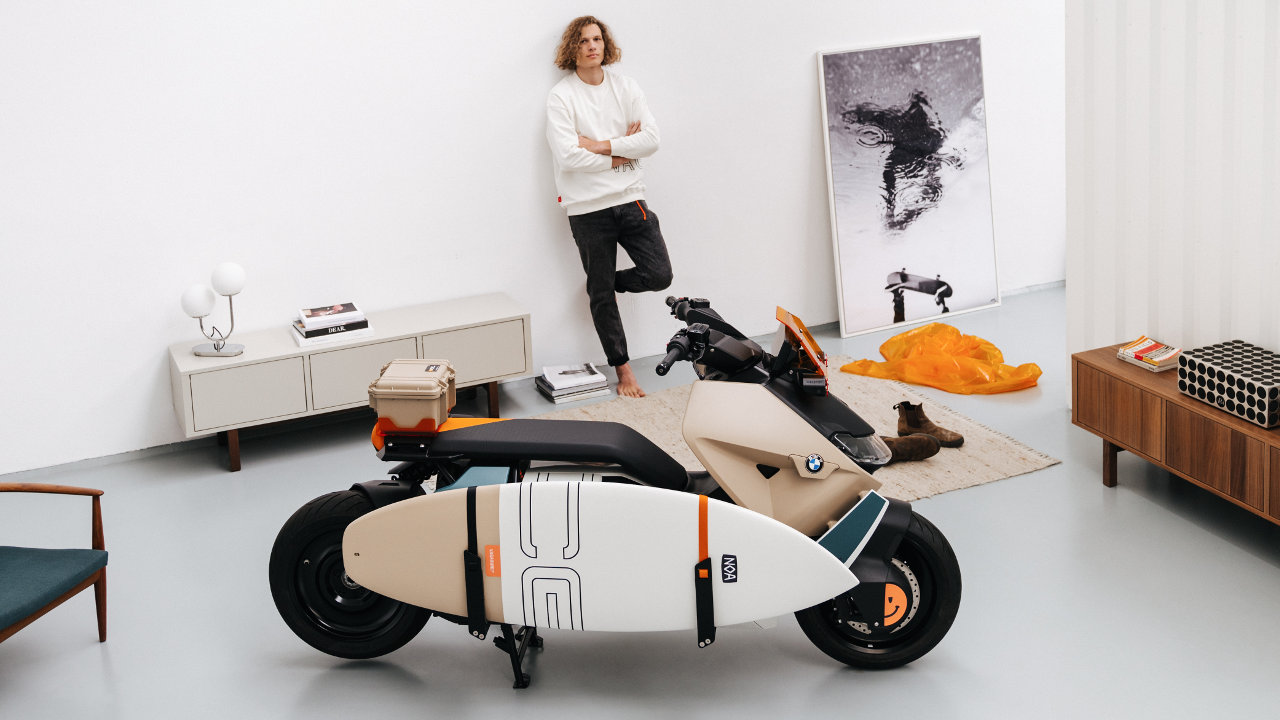 Σύμφωνα με το σλόγκαν “Η Δράση συναντά τη Μόδα”, το BMW CE 04 Vagabund Moto Concept απέκτησε μια λειτουργική θήκη που συμπληρώνει τον στάνταρ αποθηκευτικό χώρο, καθώς και μια σανίδα του σερφ με σύστημα μεταφοράς ενσωματωμένο στο όχημα – για ένα ταξίδι με κατεύθυνση τη θάλασσα ή την πλησιέστερη λίμνη.