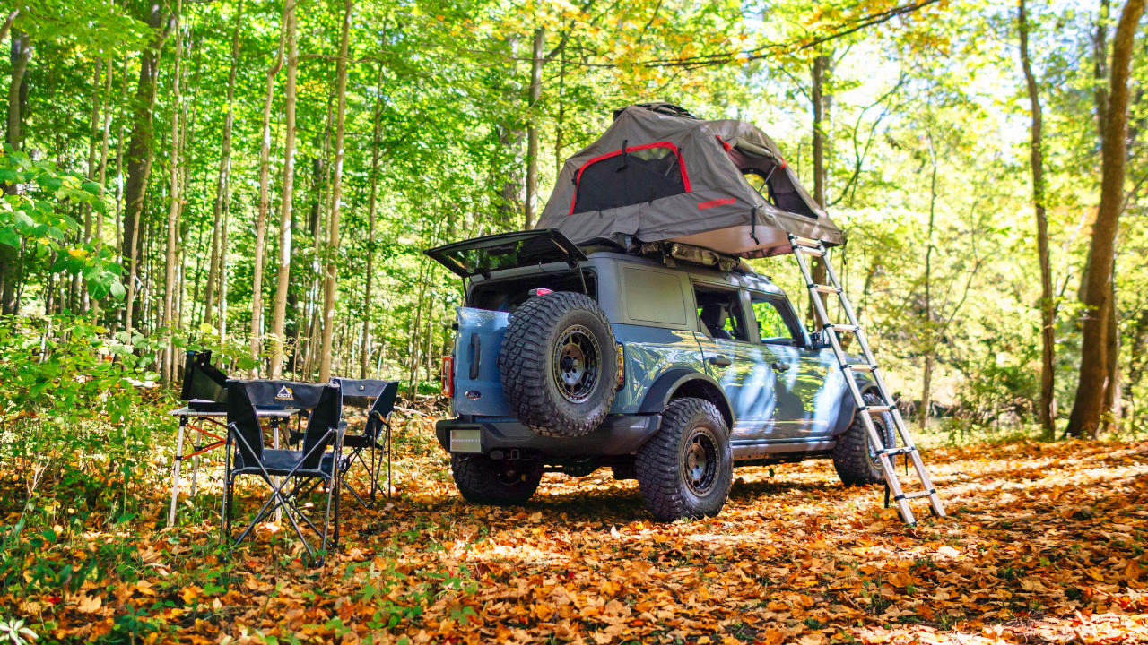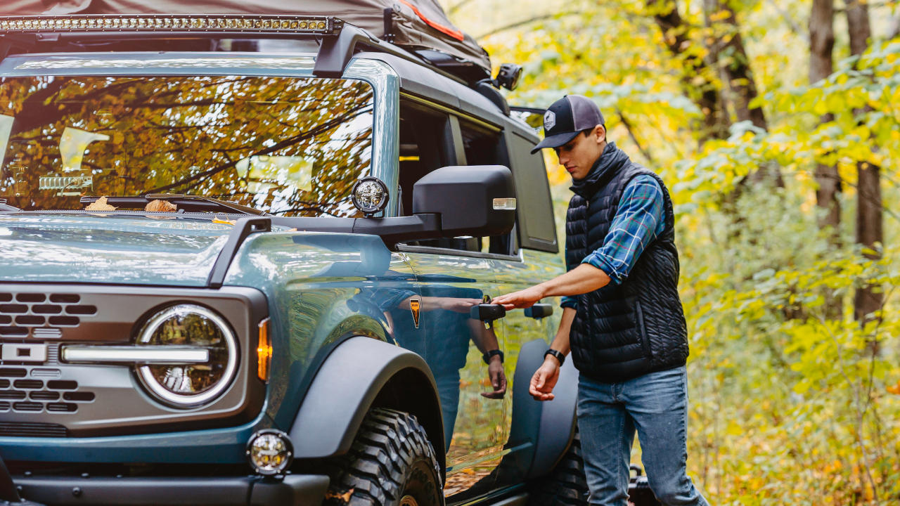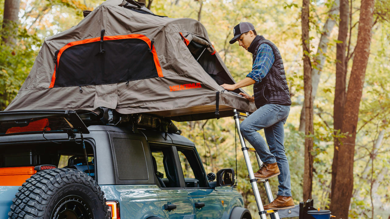 Στον εξοπλισμό “επιβίωσης” περιλαμβάνεται επίσης εργάτης στο εμπρός μέρος, ο οποίος έχει τοποθετηθεί σε ειδικό προφυλακτήρα και φυσικά η πτυσσόμενη σκηνή που βλέπουμε στην οροφή της Yakima πάνω στην εργοστασιακή σχάρα του Bronco. Βλέπουμε επίσης LED μπάρα φωτός αλλά και έξι ακόμη LED φωτιστικά σώματα της Rigid που έχουν τοποθετηθεί με τέτοιο τρόπο ώστε να προσφέρουν ορατότητα προς όλες τις κατευθύνσεις.