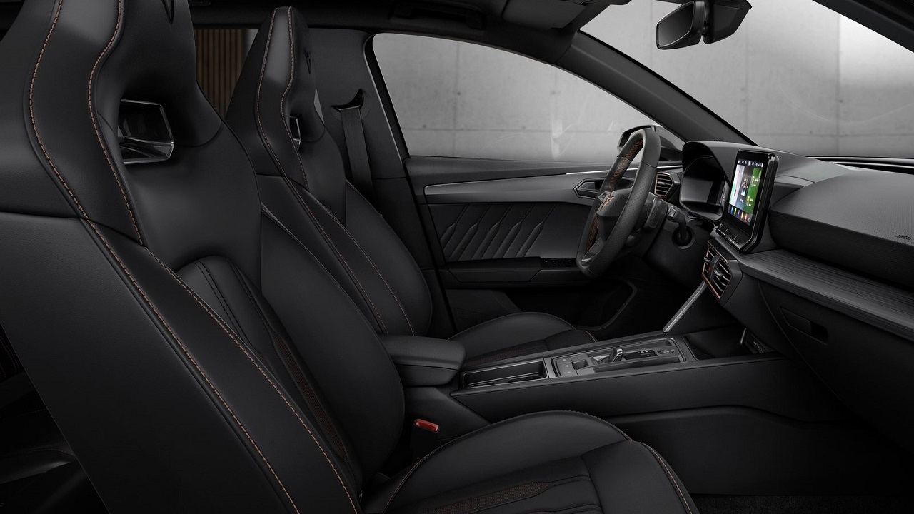 Στο εσωτερικό υπάρχουν χάλκινες λεπτομέρειες, σήματα κατατεθέν του τμήματος Cupra, flat-buttom τιμόνι και αλουμινένια πεντάλ. Εντυπωσιακά είναι και τα καθίσματα που προσφέρουν μία επιπλέον «sportive» αίσθηση. Κατά τα άλλα, υπάρχουν αρκετές ομοιότητες με τις «απλές» εκδόσεις, όπως ο ψηφιακός πίνακας οργάνων μεγέθους 10,25 ιντσών και η κεντρική οθόνη 10 ιντσών.