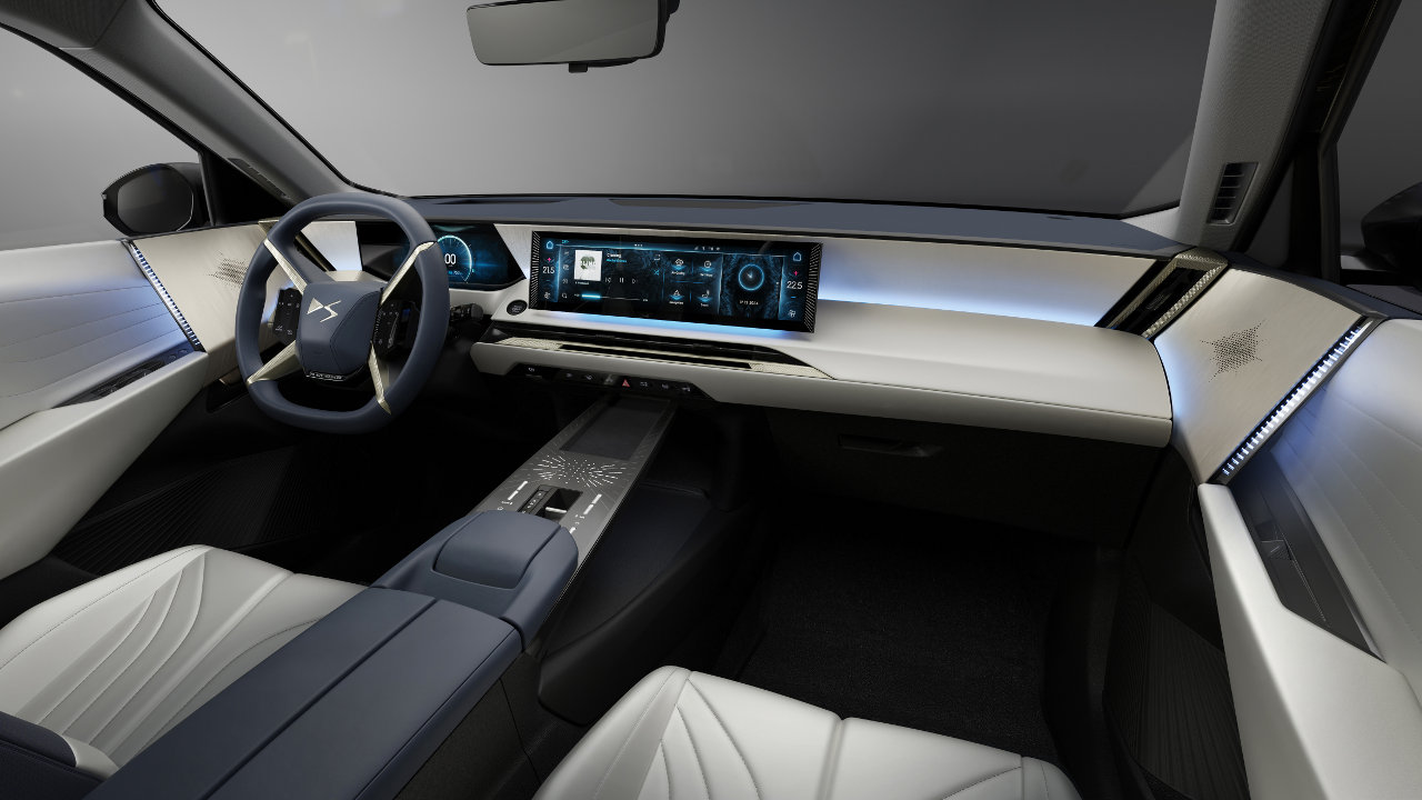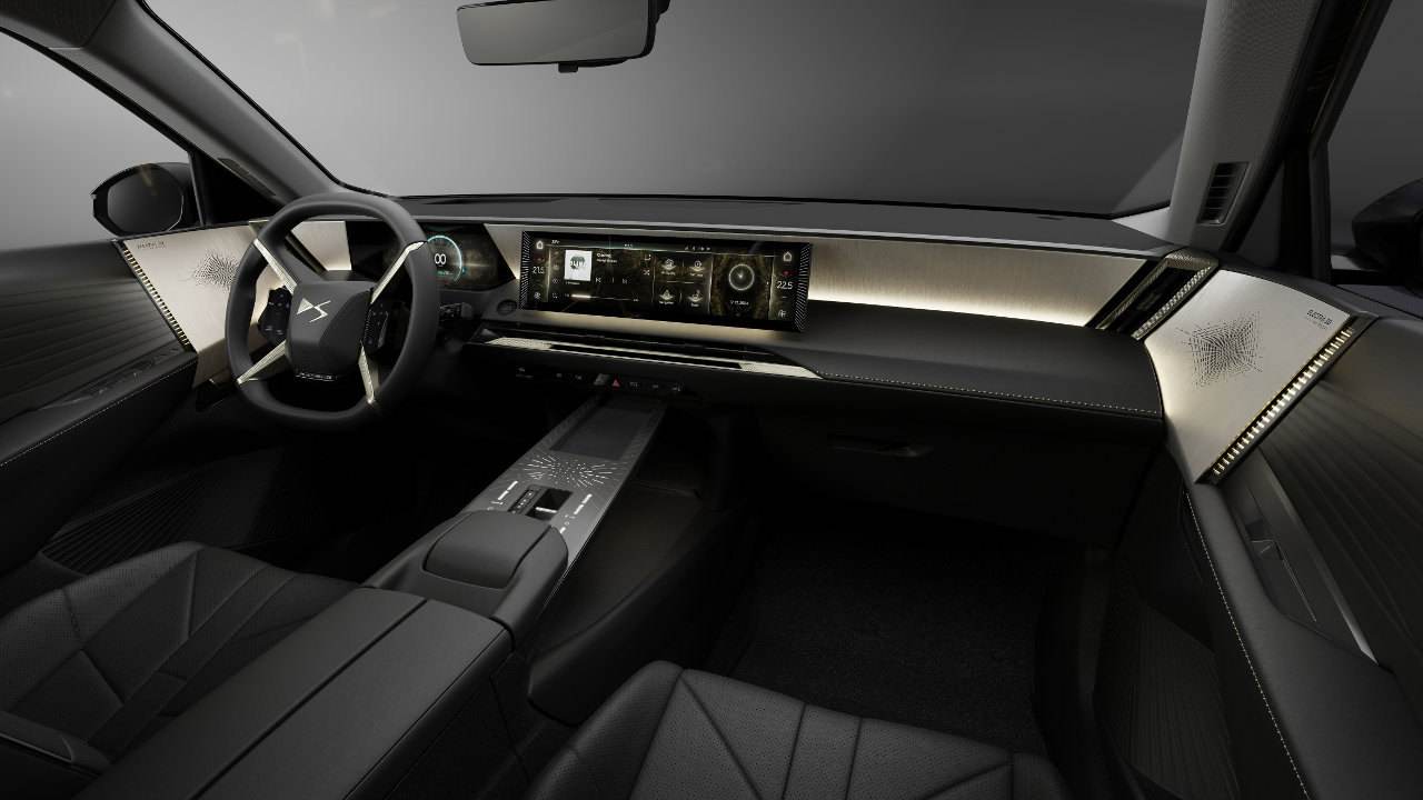 Στο ταμπλό ξεχωρίζει το τιμόνι σε σχήμα “Χ” και κυριαρχείται από τον πίνακα οργάνων των 10,25″ που έχει δίπλα του τη μεγάλη μακρόστενη οθόνη των 16 ιντσών του συστήματος πολυμέσων νέας γενιάς που μπορεί να ελεγχθεί χρησιμοποιώντας αναγνώριση ομιλίας ή από την οθόνη. Είναι ένα πλαίσιο “όλα σε ένα” που περιλαμβάνει ηχοσύστημα 8 ηχείων (ή 14 με το Electra 3D της Focal Hi-fi), 4 υποδοχές USB-C, συνδεσιμότητα Bluetooth, ασύρματο Apple CarPlay και Android Auto με εκτεταμένη αναγνώριση ομιλίας και ChatGPT. Το DS Iris System 2.0 ξεκλειδώνει επίσης την πρόσβαση σε πολλαπλές συνδεδεμένες υπηρεσίες.