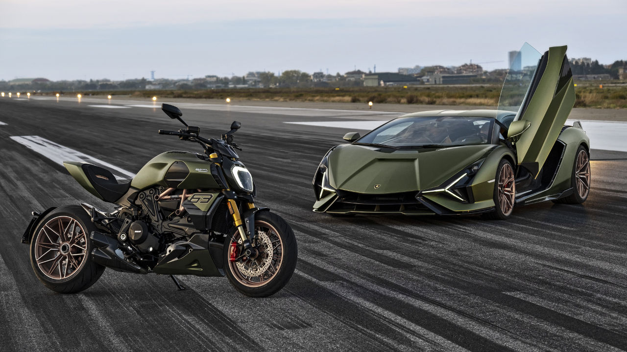 Με τις δύο διάσημες ιταλικές εταιρίες να ανήκουν στον ίδιο όμιλο και τα εργοστάσια τους να βρίσκονται σε απόσταση περίπου 20 χλμ., η νέα συνεργασία των Ducati και Lamborgini για τη δημιουργία μιας νέας έκδοσης μόνο έκπληξη δεν προκαλεί. Το πρώτο “προϊόν” λοιπόν αυτής της επίσημης συνεργασίας -οι δύο εταιρίες συνεργάζονται ανεπίσημα σε άλλους τομείς- ακούει στο όνομα Ducati Diavel 1260 Lamborghini με τη νέα έκδοση του ιταλικού power cruiser να αντλεί σχεδιαστικά στοιχεία από την κορυφαία υβριδική Lamborghini Siàn FKP 37 των 819 ίππων. Το ιταλικό supercar με τις ξεχωριστές γραμμές που αντλούν την έμπνευση τους από τη θρυλική Countach θα παραχθεί σε μόλις 63 αντίτυπα, ενώ η παραγωγή του Diavel Lamborghini θα φτάσει στις 630 μονάδες.