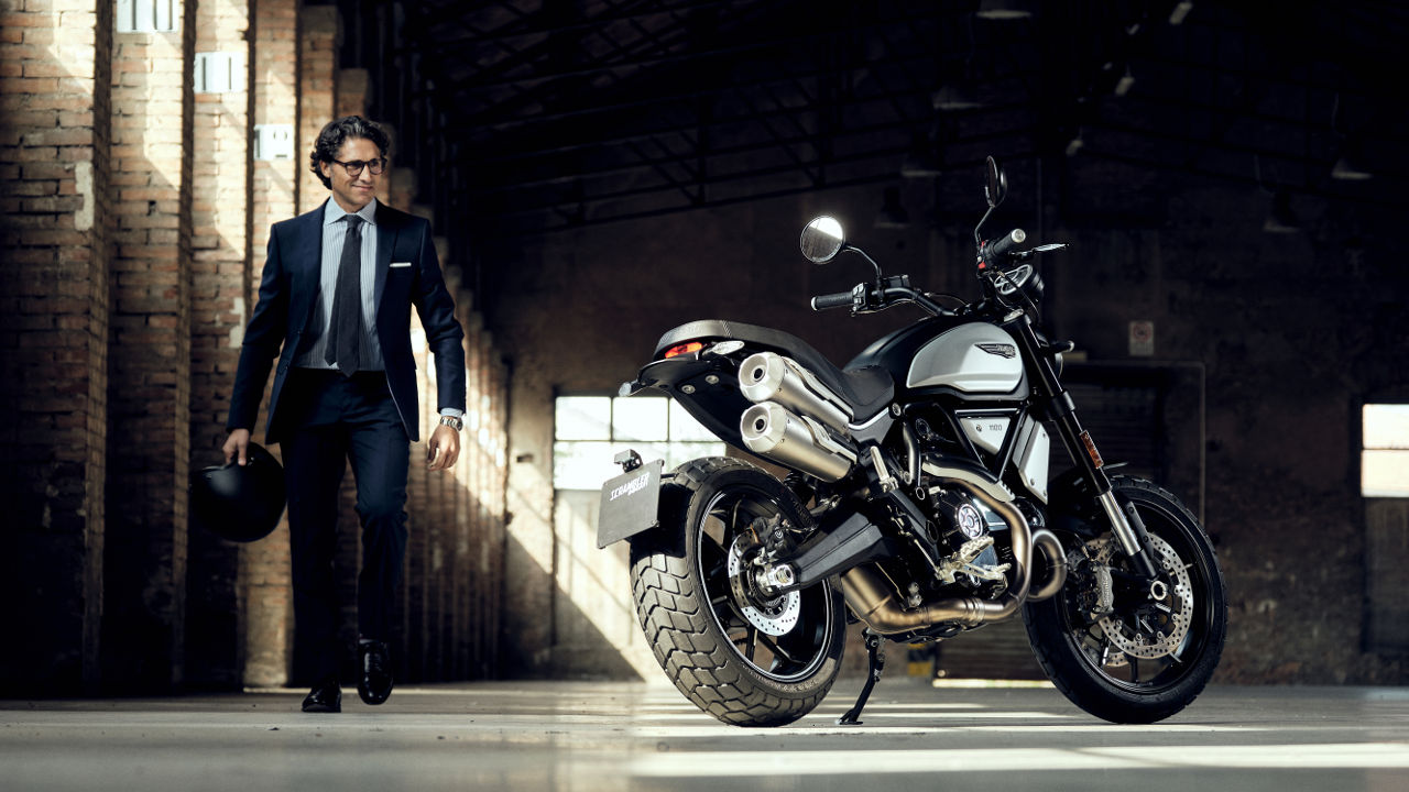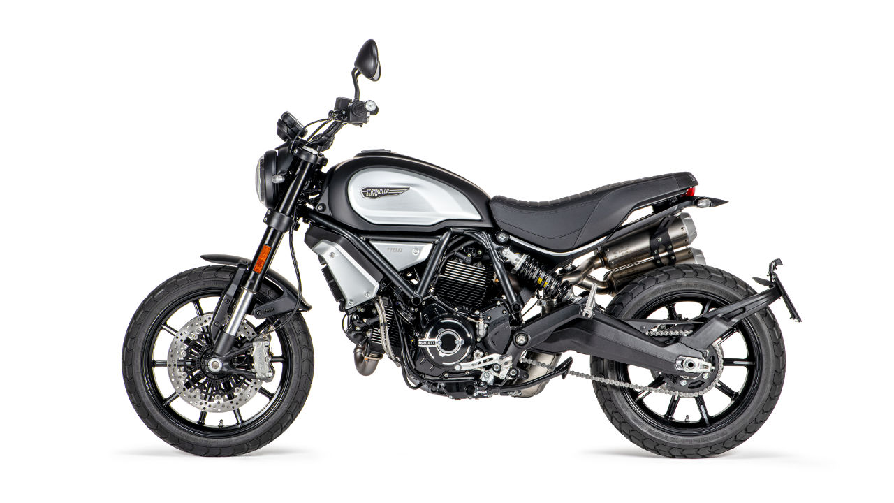 Το κορυφαίο μοντέλο της σειράς Scrambler, αυτό με τον μεγάλο αερόψυκτο κινητήρα των 1.103 κ.εκ. με το δεσμοδρομικό σύστημα κίνησης των βαλβίδων, τους 86 ίππους και τα 88 Nm ροπής στις 7.500 κια 4.750 σ.α.λ. αντίστοιχα φέρει πλήρως ρυθμιζόμενο ανάποδο πιρούνι της Marzocchi με διάμετρο καλαμιών στα 45 χλστ. και αμορτισέρ της Kayaba το οποίο ρυθμίζεται ως προς την επαναφορά αλλά και την προφόρτιση του ελατηρίου του.