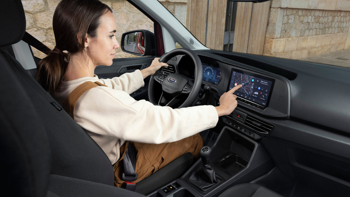 Στην καμπίνα του Transit Connect υπάρχει στάνταρ ψηφιακός πίνακας πληροφοριών 10 ιντσών για τον οδηγό που συνδυάζεται με μια έγχρωμη κεντρική οθόνη αφής με διαγώνιο 10 ιντσών, με προαιρετικό Connected Navigation. Το σύστημα είναι συμβατό με Apple Carplay και Android Auto, με τη σύνδεση να γίνεται αυτόματα.