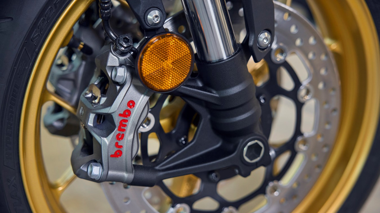 Το πλαίσιο είναι νέο, ατσάλινο, δύο δοκών με το ανεστραμμένο πιρούνι να είναι το πλήρως ρυθμιζόμενο SFF-BP της Showa με διάμετρο καλαμιών στα 41 χλστ., το αμορτισέρ είναι κεντρικά τοποθετημένο και φέρει επίσης ρυθμίσεις, ενώ για τα φρένα φροντίζει η Nissin με ακτινικά τοποθετημένες 4πίστονες δαγκάνες εμπρός και δίσκους διαμέτρου 210 χλστ.