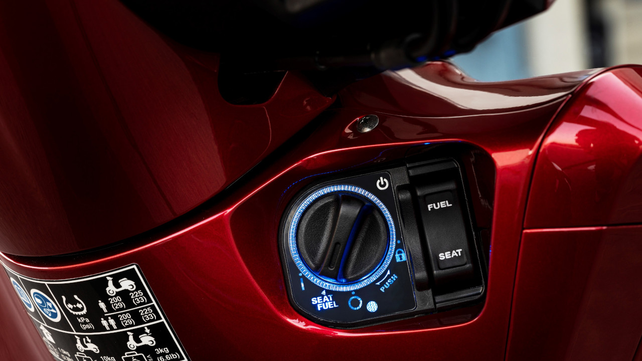 Ο χώρος κάτω από τη σέλα έχει αυξηθεί κατά δέκα λίτρα επιπλέον, στα 28, με το ρεζερβουάρ να μετακομίζει στην ποδιά, ενώ κάτω από τη σέλα βλέπουμε πλέον και θύρα USB.