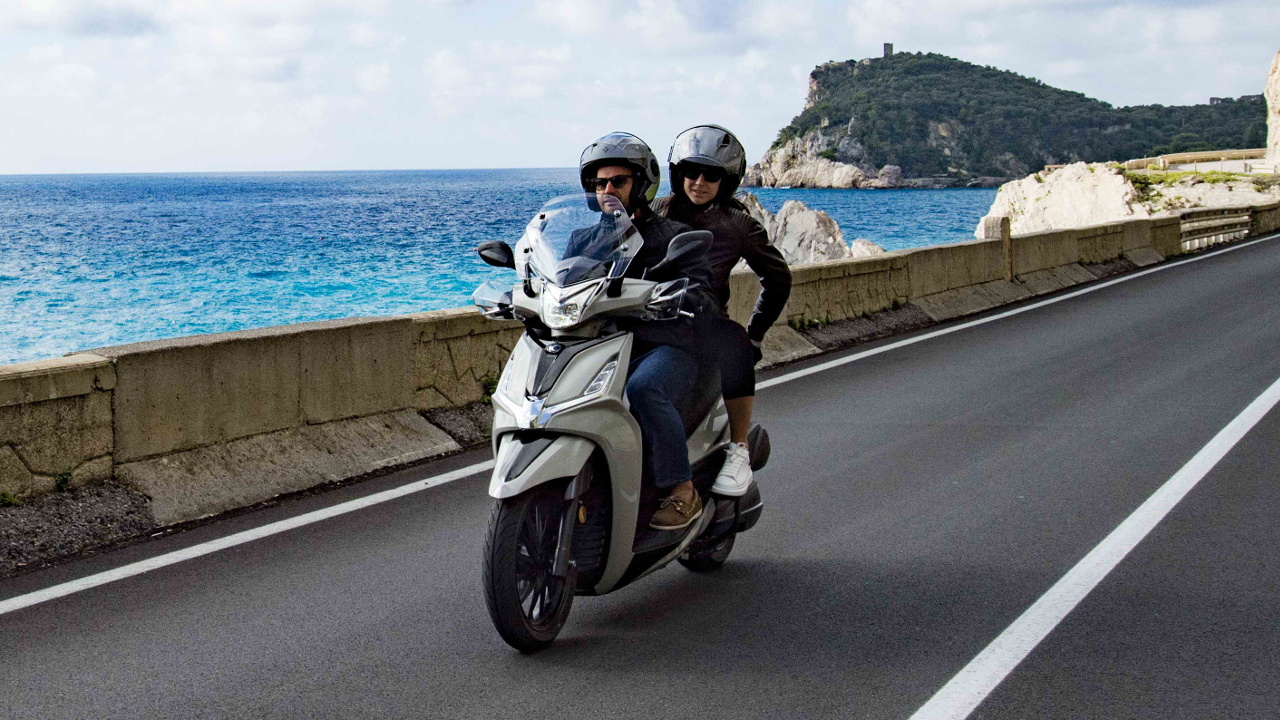 Ο μεγάλος τροχός των 16 ιντσών μπροστά προσφέρει σταθερότητα σε κάθε συνθήκη, ενώ η χρήση τροχού 14 ιντσών πίσω αποδεικνύεται ευεργετική για τον αποθηκευτικό χώρο κάτω από τη σέλα, ο οποίος μπορεί πλέον να φιλοξενήσει δύο κράνη κλειστού τύπου (Fullface), όπως επίσης και μερικά ακόμη μικροπράγματα.