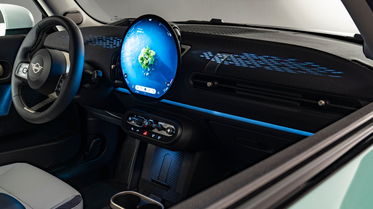 Παράλληλα, η μινιμαλιστική εσωτερική σχεδίαση του Cooper είναι εμπνευσμένη από το κλασικό Mini. Το νέο τιμόνι, η στρογγυλή οθόνη OLED, η γνώριμη μπάρα ΜΙΝΙ με τους διακόπτες δύο θέσεων και το ταμπλό με τη δίχρωμη υφασμάτινη επένδυση, δημιουργούν μια αίσθηση ευρυχωρίας στην καμπίνα. Οι καθαρές γραμμές είναι το σήμα κατατεθέν του μοντέρνου εσωτερικού, ενώ η πανοραμική γυάλινη οροφή συνεισφέρει σε μία φωτεινή και φιλική ατμόσφαιρα. Αναδιπλώνοντας το πίσω κάθισμα σε αναλογία 60:40, ο χώρος αποσκευών μπορεί να αυξηθεί ευέλικτα από τα 210 λίτρα σε έως και 800 λίτρα.