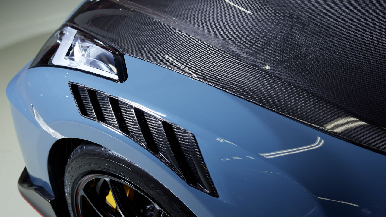 Η ειδική έκδοση του Nissan GT-R NISMO φέρει άβαφο καπό από ανθρακονήματα αλλά και αποκλειστικές σφυρήλατες ζάντες αλουμινίου “Rays” 20 ιντσών. Για πρώτη φορά σε GT-R βλέπουμε και το νέο σήμα της ιαπωνικής εταιρίας που έκανε για πρώτη φορά την εμφάνιση του στο ηλεκτρικό Ariya.