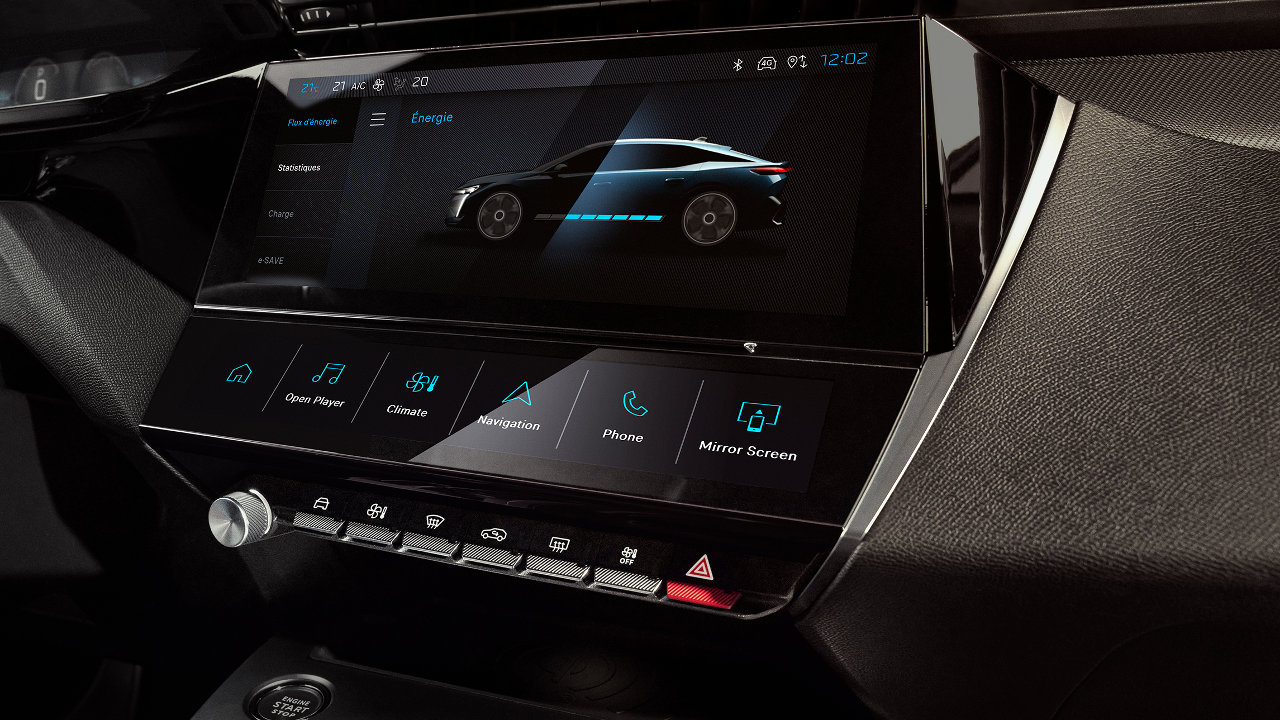 Το εσωτερικό διακρίνεται για την i-Cockpit σχεδιαστική φιλοσοφία με μια στάνταρ οθόνη αφής 10 ιντσών να βρίσκεται κεντρικά τοποθετημένη στο ταμπλό και να επιτρέπει τον χειρισμό του multimedia συστήματος i-Connect Advanced, που προσφέρεται επίσης ως στάνταρ και περιλαμβάνει το σύστημα συνδεδεμένης πλοήγησης TomTom, ασύρματη σύνδεση με κινητό και δυνατότητα φωνητικών εντολών. Για βέλτιστη αναγνωσιμότητα, η προβολή του χάρτη καλύπτει ολόκληρη την οθόνη και οι ενημερώσεις πραγματοποιούνται ασύρματα.