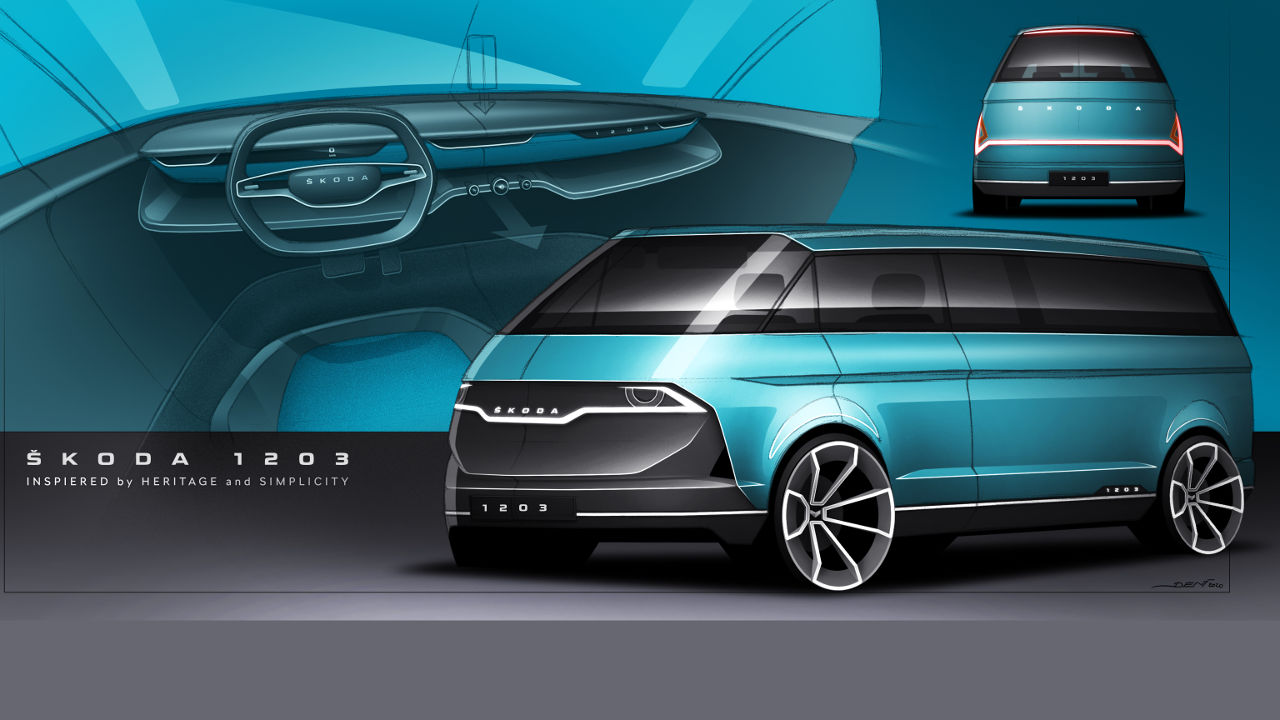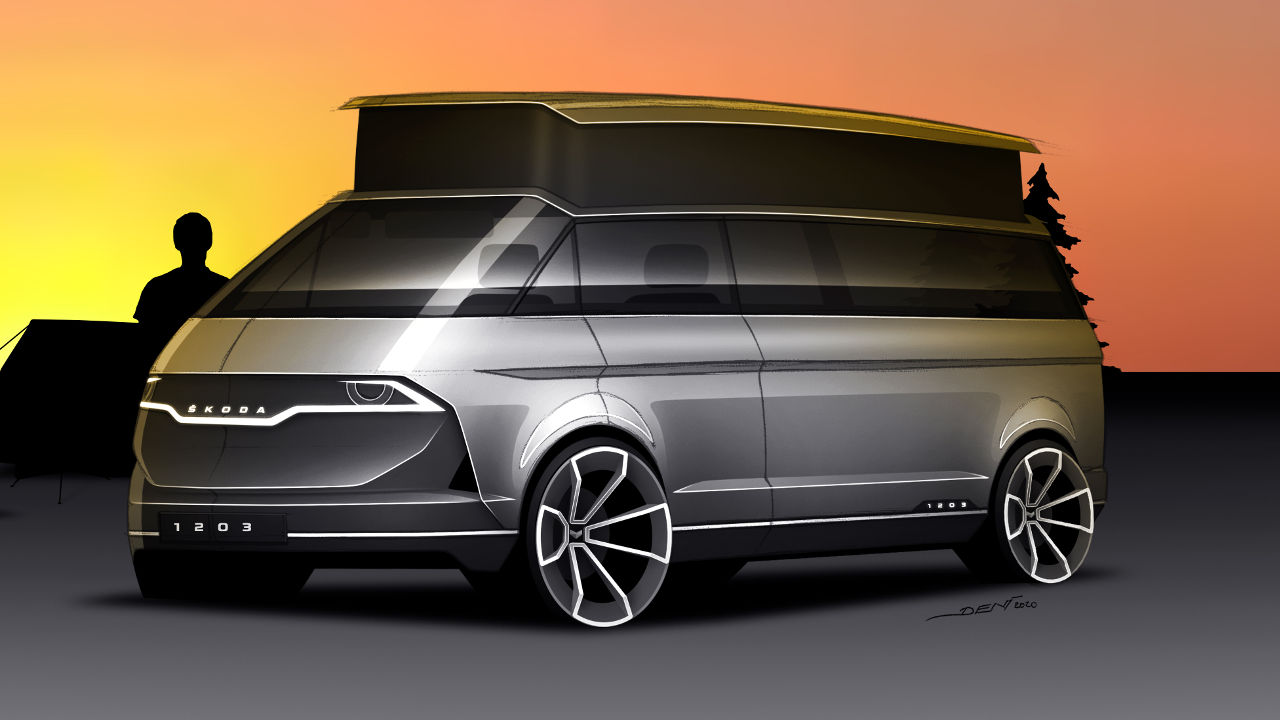 Σε αυτή τη σύγχρονη εκδοχή του, το Skoda 1203 concept είναι ένα σύγχρονο camper van με πτυσσόμενη οροφή που βασίζεται στο πάτωμα του VW Transporter. Από το λιτό εσωτερικό του απουσιάζει η οθόνη αφής του συστήματος πολυμέσων με τον οδηγό να χρησιμοποιεί τη δική του έξυπνη συσκευή για τον συγκεκριμένο σκοπό. Να σημειωθεί πως ο Hajek εργάζεται στην τσέχικη εταιρία ως σχεδιαστής user interface (HMI), οπότε γνωρίζει όσο λίγοι τον ρόλο των οθονών σε ένα μοντέρνο αυτοκίνητο.