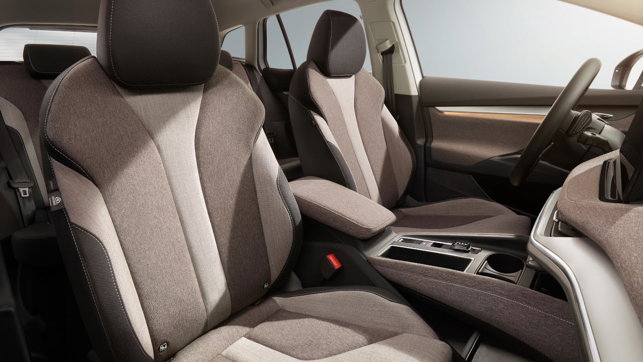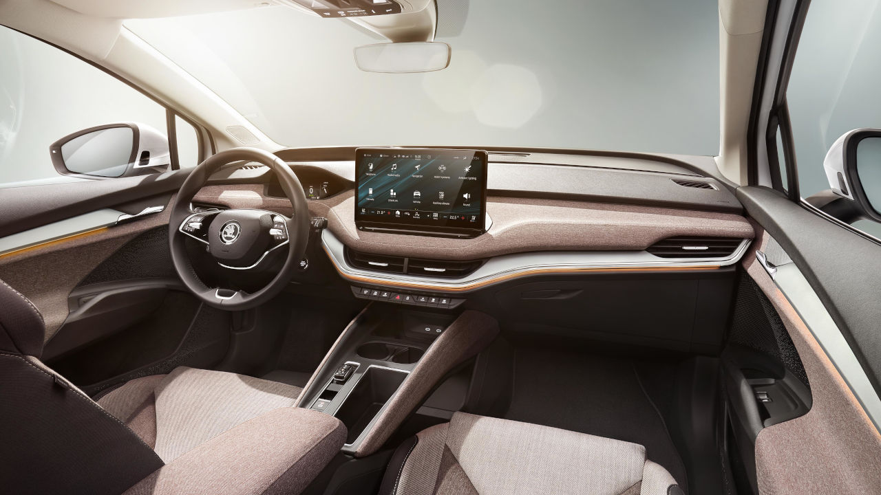 Η Skoda θα προσφέρει για το εσωτερικό του Enyaq iV δέκα διαφορετικά “θεματικά” πακέτα, όπως τα χαρακτηρίζει αναφορικά με τις επιλεγμένες επενδύσεις και τα χρώματα στο οποία θα μπορούν οι ενδιαφερόμενοι να βάλουν και τη δική τους προσωπική πινελιά.