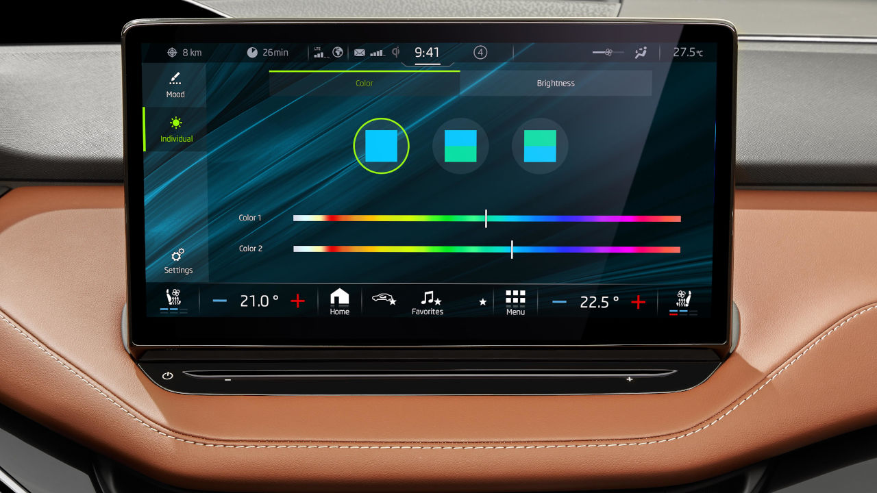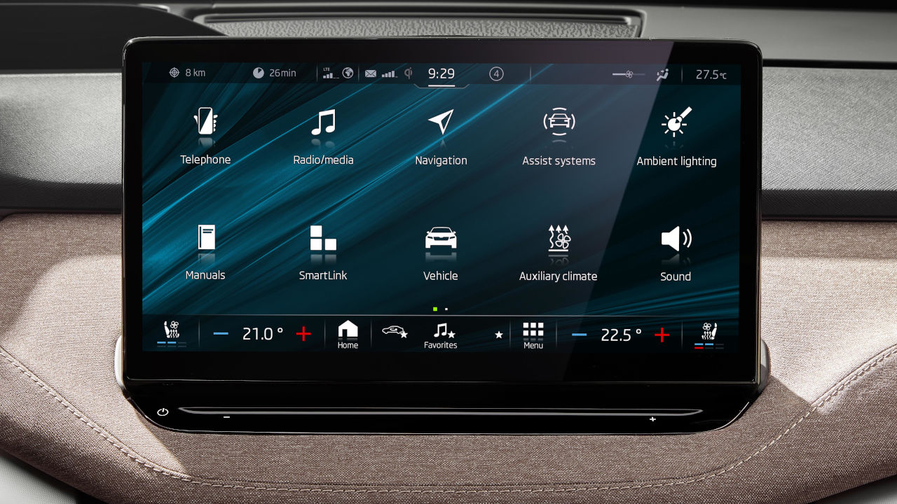 Το πρώτο ηλεκτρικό SUV της SKoda είναι και το πρώτο μοντέλο των Τσέχων που φέρει στον εξοπλισμό του HUD επαυξημένης πραγματικότητας που μπορεί και προβάλλει πληροφορίες σε δύο διαφορετικές περιοχές μπροστά από τον οδηγό. Οι πληροφορίες της επαυξημένης πραγματικότητας προβάλλονται πιο ψηλά και “επάνω” στο δρόμο, ενώ ο οδηγός μπορεί να ρυθμίζει το σημείο προβολής τους στο παρμπρίζ του Enyaq iV, να αλλάξει το χρώμα και τη φωτεινότητα και να διαλέξει εκείνος τις πληροφορίες που προτιμά.