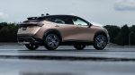 Το Ariya εκφράζει τη νέα σχεδιαστική γλώσσα της Nissan με μια ελαφρώς φουτουριστική “διάθεση”. Στο αμάξωμα του κυριαρχούν σε καμπύλες, οι κοίλες και οι κυρτές επιφάνειες για ένα αποτέλεσμα που συνδυάζει διακριτικά τον δυναμισμό με την κομψότητα. Έχοντας περίοπτη θέση στη μάσκα το “παρών” δίνει και το ανασχεδιασμένο λογότυπο της Nissan που απαρτίζεται από 20 LEDs!