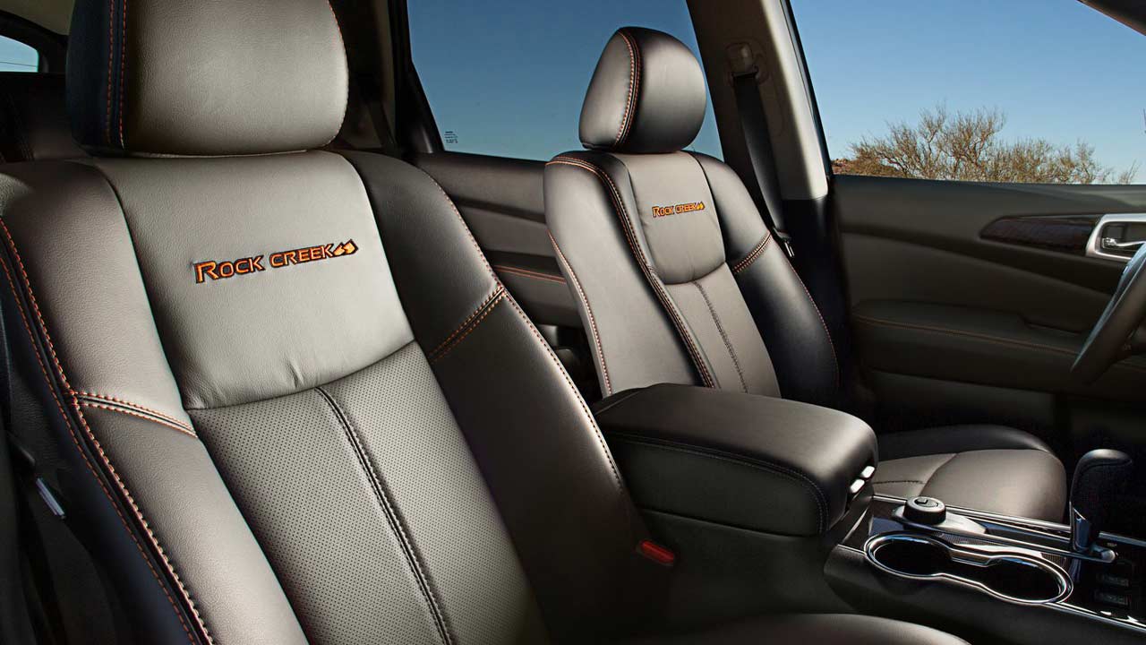 Το Nissan Pathfinder Rock Creek έχει να επιδείξει έναν πιο σκληροτράχηλο χαρακτήρα καθώς διαθέτει προστατευτικά πλαστικά στους θόλους, εμπρός ποδιά και λασπωτήρες, ενώ οι τροχοί του είναι 18 ιντσών με εκτός δρόμου ελαστικά. Φυσικά στο αμάξωμα υπάρχουν ράγες οροφής καθώς και τα σχετικά λογότυπα που ενημερώνουν για την ονομασία του μοντέλου.