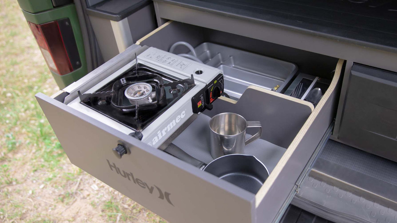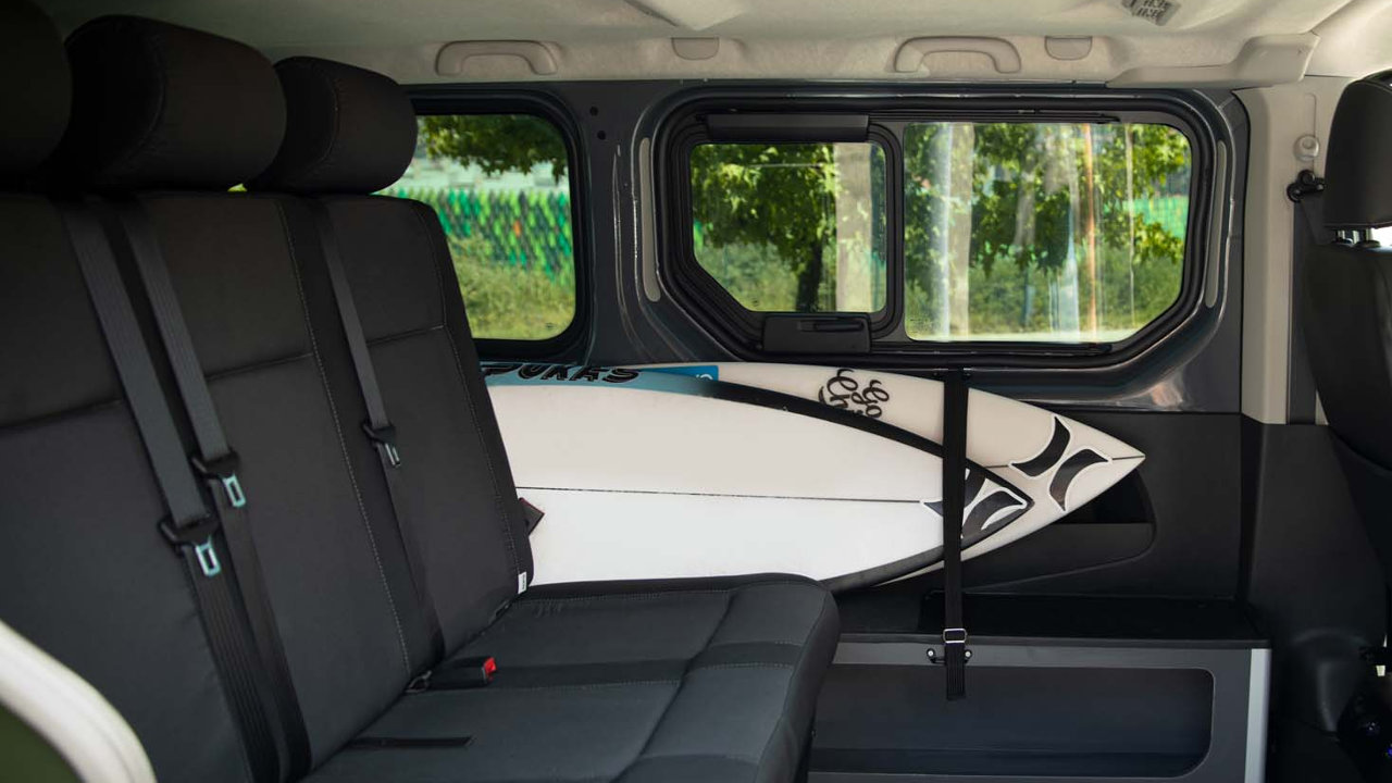 Βασισμένο στο επαγγελματικό Primastar της Nissan, το City Surfer είναι εφοδιασμένο με ειδικό χώρο αποθήκευσης για τη μεταφορά των ιστιοσανίδων, των στολών και των αξεσουάρ του surfing, με εργονομικά συρτάρια που έχουν όλα τα απαραίτητα σύνεργα για τη διαβίωση στην παραλία, καθώς και με ένα φορητό ντους!