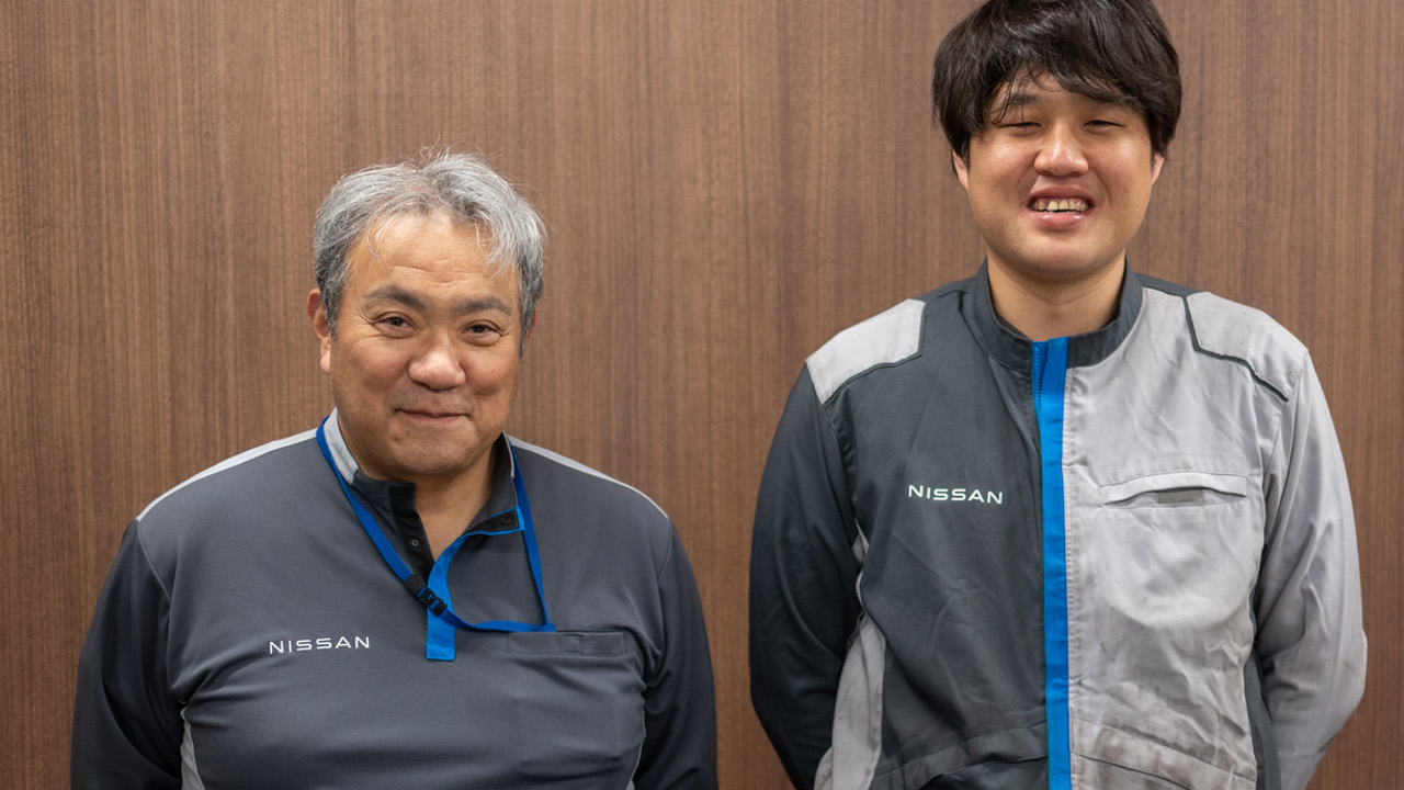Στα δεξιά του Tagusari βρίσκεται ο Ryota Aratani, ένας μηχανικός κατασκευής που ειδικεύεται στην παραγωγή στροφαλοφόρου από το 2009, όταν και εντάχθηκε στη Nissan.