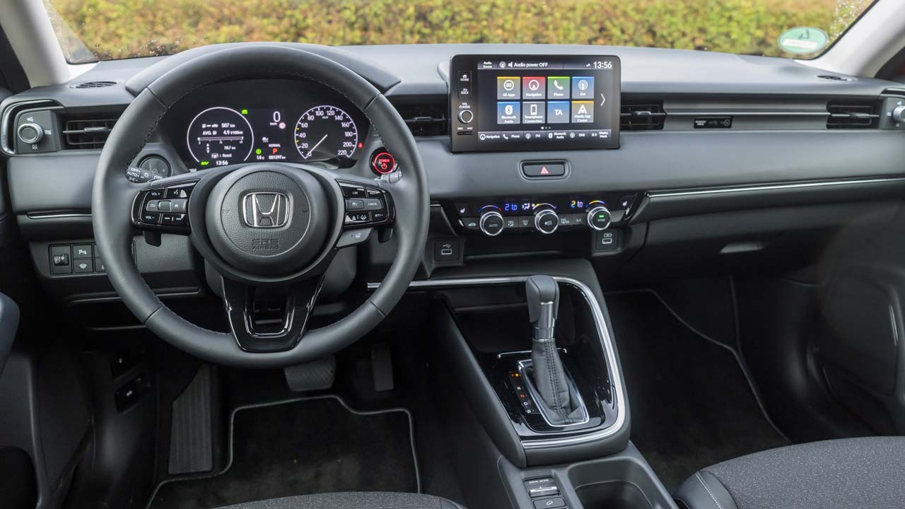 Στην πράξη, οδηγώντας το ιαπωνικό μοντέλο διαπίστωσα πως οι ισχυρισμοί της Honda για ένα αυτοκίνητο το οποίο κινείται σαν ηλεκτρικό στο αστικό περιβάλλον είναι αληθείς. Συγκεκριμένα, όντως, σε ταχύτητες μέχρι 40 χλμ./ώρα το νέο HR-V μόνο υβριδικό δεν θύμισε, καθώς κατά το 90% δουλεύει αποκλειστικά με το ηλεκτρικό του μοτέρ. Η ησυχία στο εσωτερικό του είναι παροιμιώδης και ακόμη και όταν ο βενζινοκινητήρας μπαίνει σε λειτουργία, γίνεται σχεδόν χωρίς να το καταλάβεις, ενώ και η ποιότητα κατασκευής είναι σαφώς ανώτερη από αυτήν του μοντέλου που αντικαθιστά. Οι χώροι είναι και αυτοί βελτιωμένοι και σίγουρα στο άνω άκρο της κατηγορίας, όπως και η πρακτικότητα. Στοιχεία στα οποία παραδοσιακά πόνταρε και όπως φαίνεται εξακολουθεί να ποντάρει το HR-V και στην εξηλεκτρισμένη εποχή του. Το νέο κιβώτιο e-CVT συνδυάζεται αρμονικά με τον υβριδικό χαρακτήρα του αυτοκινήτου και παρέχει ομαλή αλλά και αθόρυβη λειτουργία, ενώ η ανάρτηση στους περιποιημένους δρόμους της Φρανκφούρτης έδειξε τον… καλό εαυτό της με ποιοτικά χαρακτηριστικά και αθόρυβη λειτουργία. Επίσης, θα πρέπει να τονίσω την θετική εντύπωση που μου άφησε το σύστημα κλιματισμού Air Diffusion (όπως το ονομάζει η Honda), το οποίο διαχέει μελετημένα τον αέρα στο εσωτερικό από τις ειδικές οπές στα άκρα του ταμπλό και έτσι επιτυγχάνει την επιθυμητή θερμοκρασία χωρίς να γίνεται ενοχλητικό για τον οδηγό και τους επιβάτες.
