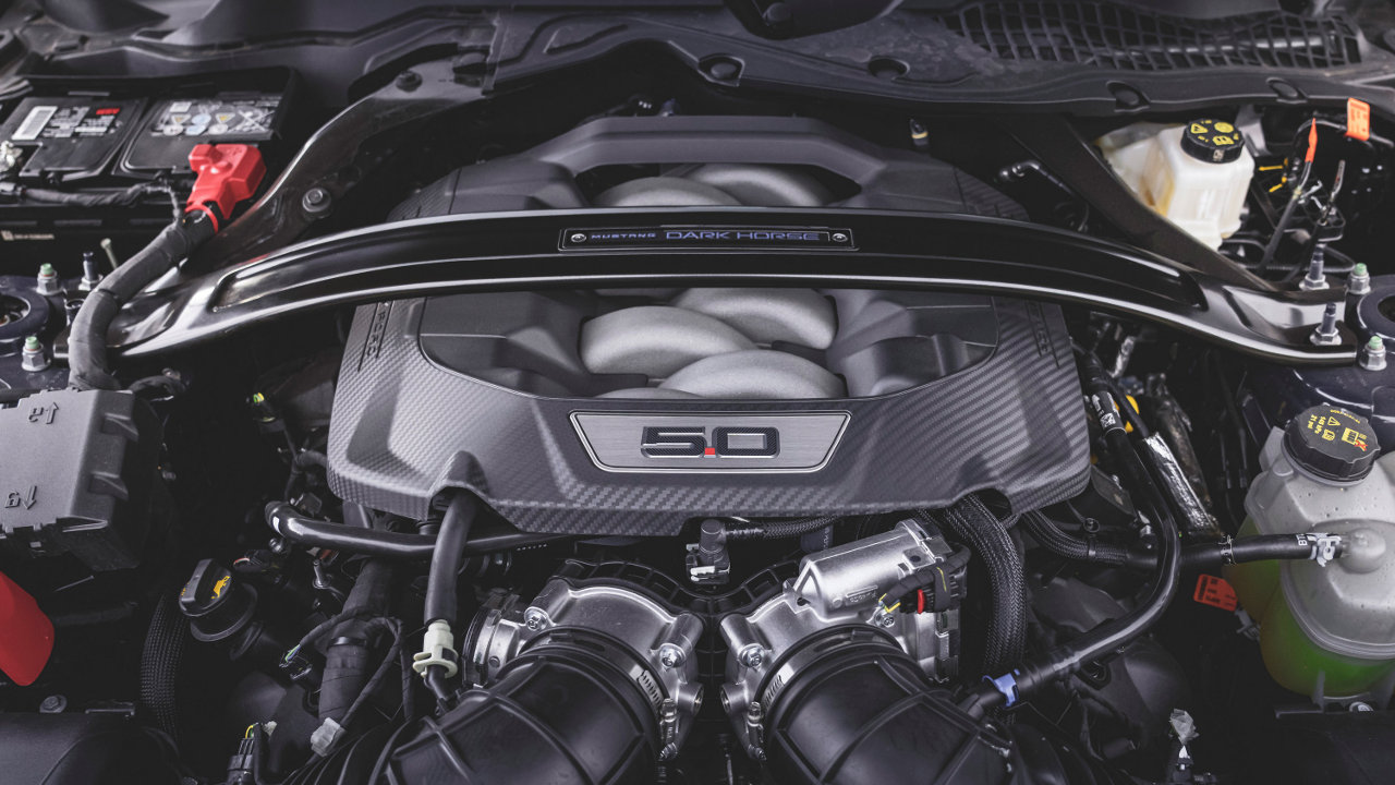 Αυτός ο V8 κινητήρας συνδυάζεται στη νέα Mustang Dark Horse είτε με το εξελιγμένο χειροκίνητο κιβώτιο 6 σχέσεων της Tremec, είτε με το προηγμένο αυτόματο κιβώτιο 10 σχέσεων της Ford, το οποίο συνοδεύεται από paddles αλλαγής ταχυτήτων στο τιμόνι. Επιπλέον, η λειτουργία flat shift επιτρέπει στους οδηγούς να ανεβάζουν ταχύτητα χωρίς να σηκώνουν το πόδι τους από το γκάζι.