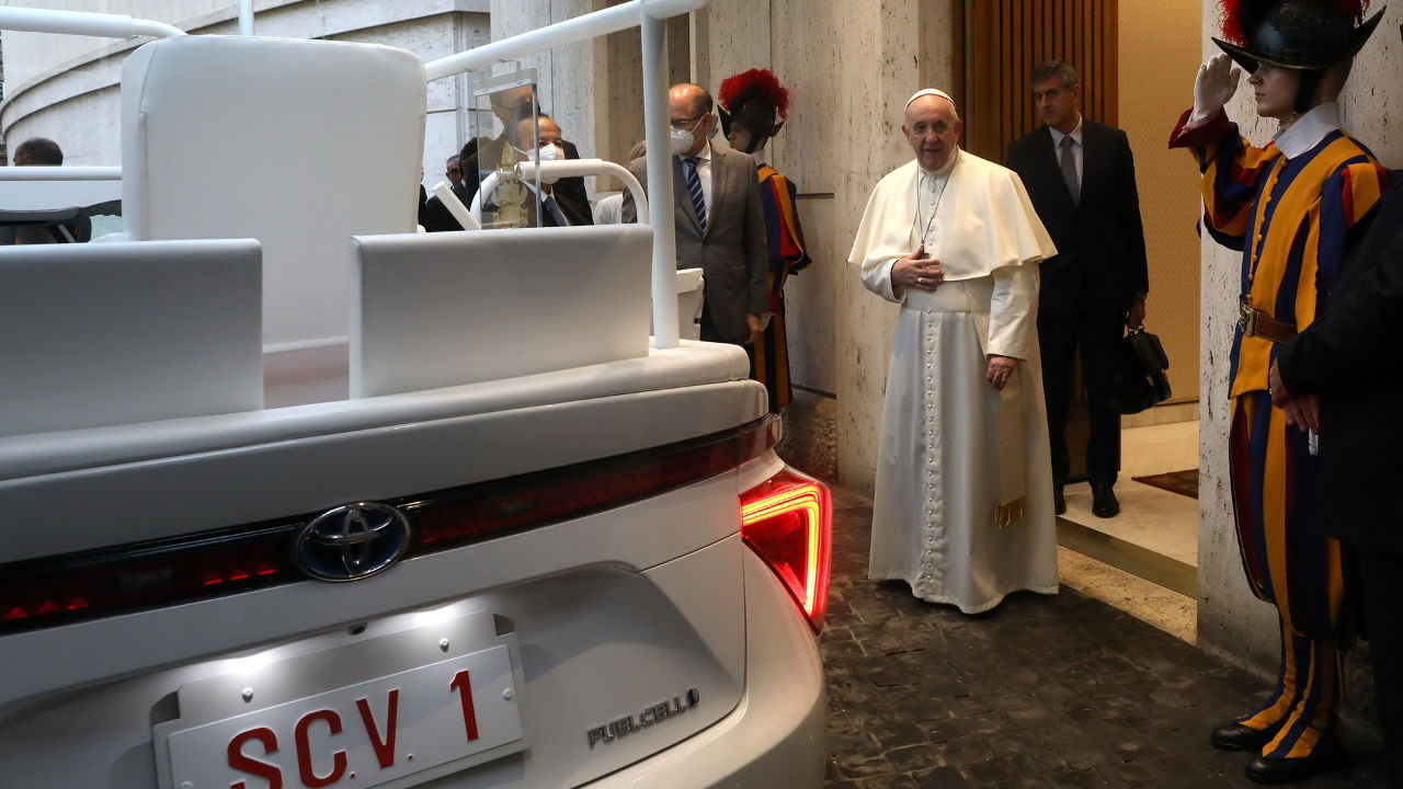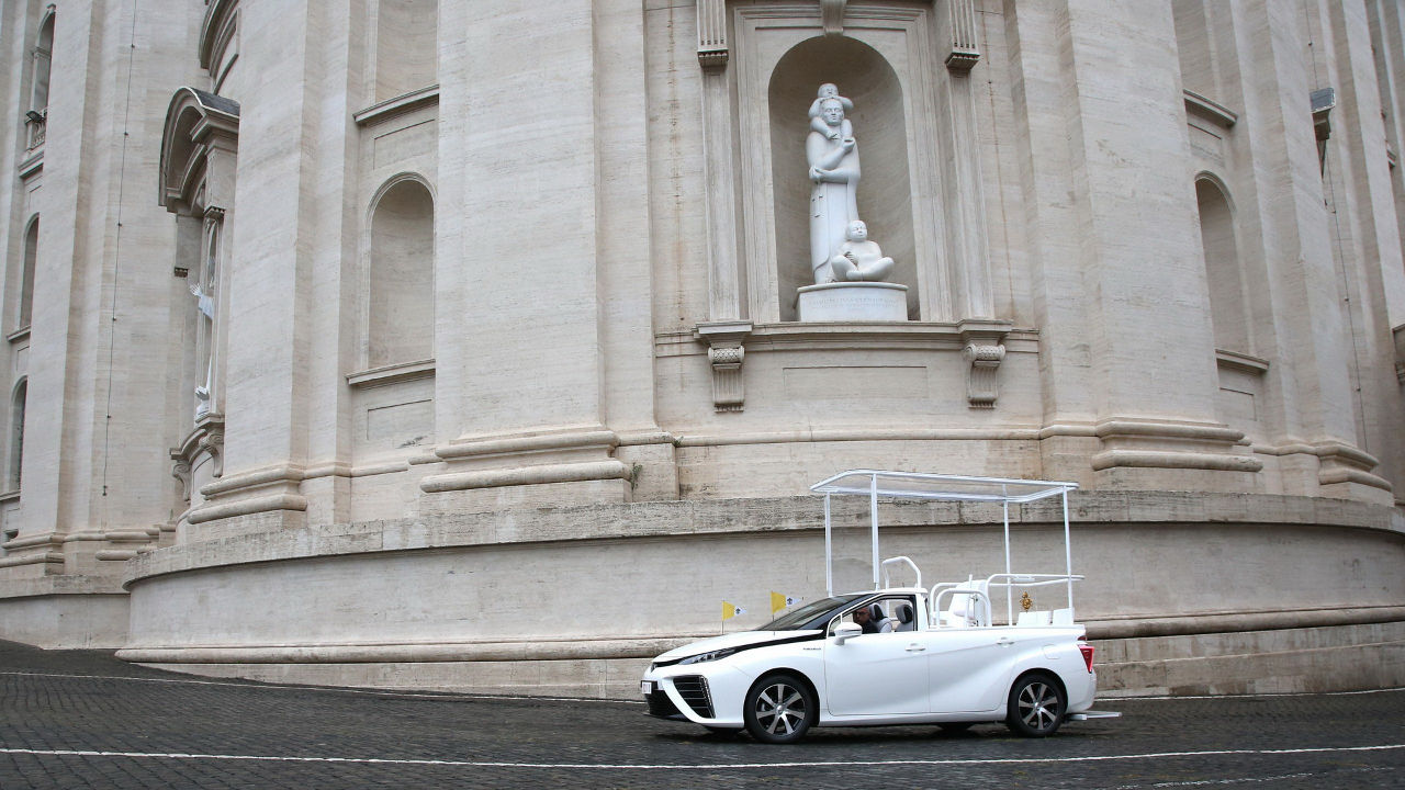 Το κατάλληλα τροποποιημένο Toyota Mirai παραδόθηκε στον Πάπα Φραγκίσκο κοντά στην κατοικία του στο Βατικανό και αποτελεί ένα από τα δύο Mirai που δημιούργησε η ιαπωνική εταιρία κατά την επίσκεψη του ποντίφικα στην Ιαπωνία το Νοέμβριο του 2019. Τώρα το υδρογονοκίνητο ηλεκτρικό μοντέλο της Toyota βρίσκεται στο γκαράζ του προκαθήμενου της Καθολικής Εκκλησίας ώστε να μπορεί να το αξιοποιεί κατά βούληση.
