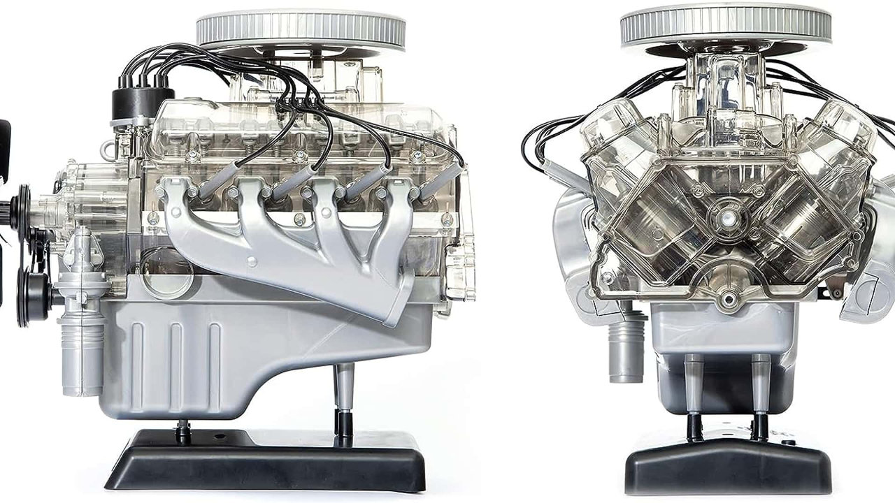 Μάλιστα η γερμανική εταιρεία έχει τοποθετήσει και φωτάκια στη θέση των μπουζί αλλά και ένα μικρό ηχείο που αναπαράγει τον αυθεντικό ήχο του V8 κινητήρα για ένα πραγματικό “ταξίδι” πίσω στον χρόνο, ενώ ανάμεσα στα μέρη που κινούνται συγκαταλέγονται ο ιμάντας χρονισμού αλλά και ο ανεμιστήρας του ψυγείου.