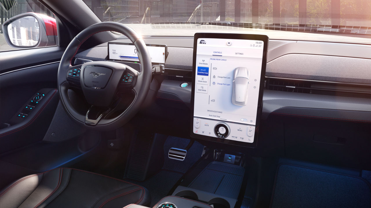 Στο εσωτερικό κυριαρχεί μία μεγάλη οθόνη μεγέθους 15,5 ιντσών, ενώ μία δεύτερη ψηφιακή οθόνη 10,2 ιντσών αναλαμβάνει το ρόλο του ψηφιακού πίνακα οργάνων. Ιδιαίτερη έμφαση έχει δοθεί και στο ηχοσύστημα, με την Ford να επιλέγει Bang & Olufsen ισχύος 560 Watt με κάποια από τα δέκα ηχεία να είναι αρμονικά ενσωματωμένα επάνω στο ταμπλό.