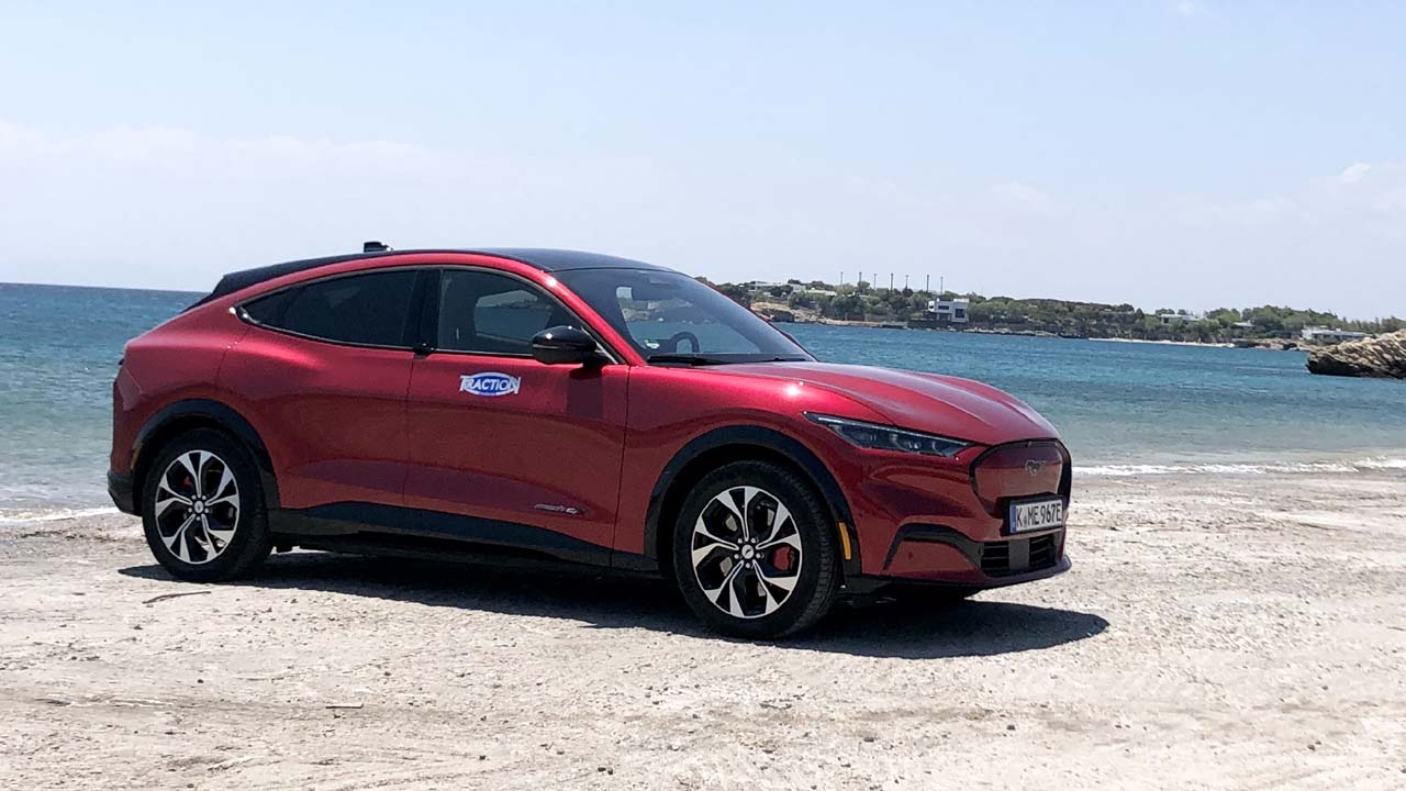 Μπαίνοντας στο αυτοκίνητο μέσω του μπουτόν στη μεσαία κολόνα, καταλαβαίνεις πως πρόκειται για μια… εισαγωγή στη νέα εποχή της Mustang. Η λειτουργία one pedal κάνει σχεδόν αχρείαστο το πεντάλ του φρένου, καθώς μπορεί έως και να ακινητοποιηθεί το αυτοκίνητο απλά αφήνοντας το γκάζι. Με αυτό τον τρόπο σε αστική και περιαστική χρήση ο οδηγός μπορεί να πλησιάσει ακόμη και να ξεπεράσει την αυτονομία που ανακοινώνει ο κατασκευαστής. Το σύστημα B&O είναι πραγματικά κορυφαίο, ενώ τα ηχεία είναι απολύτως εναρμονισμένα με το υπόλοιπο εσωτερικό. Για τους νοσταλγούς των παραδοσιακών Mustang και του κινητήρα εσωτερικής καύσης, ο οδηγός μπορεί να επιλέξει να έχει ήχο στο εσωτερικό με το πάτημα του πεντάλ γκαζιού, επιλέγοντας τη ρύθμιση “propulsion sound”. Επίσης για τους… γκατζετάκιδες υπάρχει δυνατότητα ασύρματης σύνδεσης με Apple Car Play και Android Auto, ενώ αυτό που διαπιστώσαμε κατά την διάρκεια της οδήγησης είναι πως όταν επιλέγεις κάποια διαδρομή, το navigation σου εμφανίζει απευθείας τα προτεινόμενα σημεία φόρτισης και τον αντίστοιχο χρόνο επαναφόρτισης. Ουσιαστικά το αυτοκίνητο αναλαμβάνει τον προγραμματισμό του ταξιδιού και της φόρτισης. Οδηγικά, το άμεσο σύστημα διεύθυνσης μεταφέρει στον οδηγό τις απαραίτητες πληροφορίες, ενώ οι αναρτήσεις δουλεύουν ιδανικά με το πλαίσιο, τιμώντας την παράδοση του μοντέλου, φέρνοντάς την ταυτόχρονα στις επιταγές της νέας ηλεκτρικής εποχής.