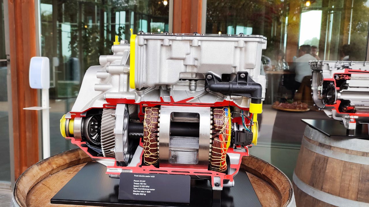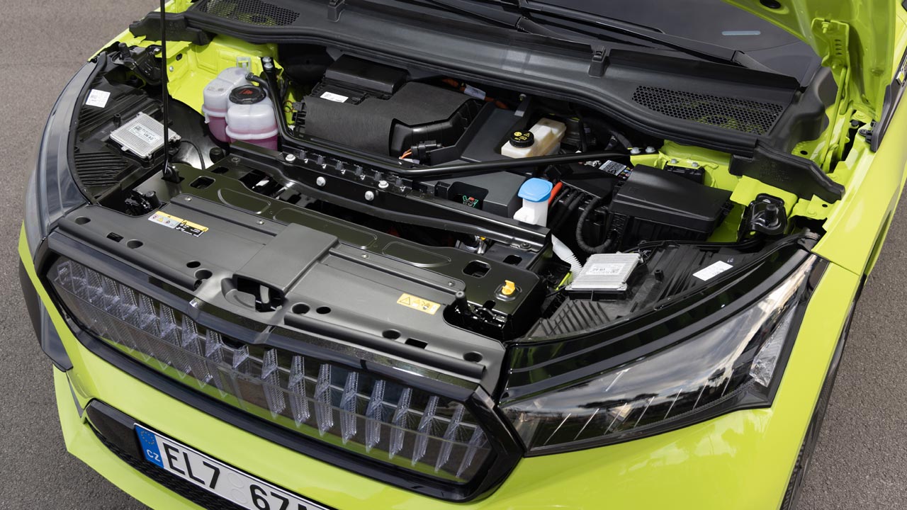 Μία επιπρόσθετη πληροφορία, για να μπαίνουμε και στα ενδότερα των γνώσεων για τους ηλεκτροκινητήρες γενικότερα (βλ. Σχετικές φωτογραφίες τους), ο εμπρός ασύγχρονος ηλεκτροκινητήρας του Enyaq Coupé iV κατασκευάζεται από τη Magna και έχει μέγιστη ισχύ 111 ίππους και μέγιστη ροπή 162 Nm, περιστρέφεται ως με βάρος 59,8 κιλά, ενώ ο πίσω ηλεκτροκινητήρας κατασκευάζεται από τον Όμιλο VAG και χρησιμοποιείται σε όλα αμιγώς ηλεκτρικά μοντέλα του. Είναι σύγχρονος με μέγιστη ισχύ 208 ίππους, μέγιστη ροπή 310 Nm, και ζυγίζει 89,4 κιλά.
