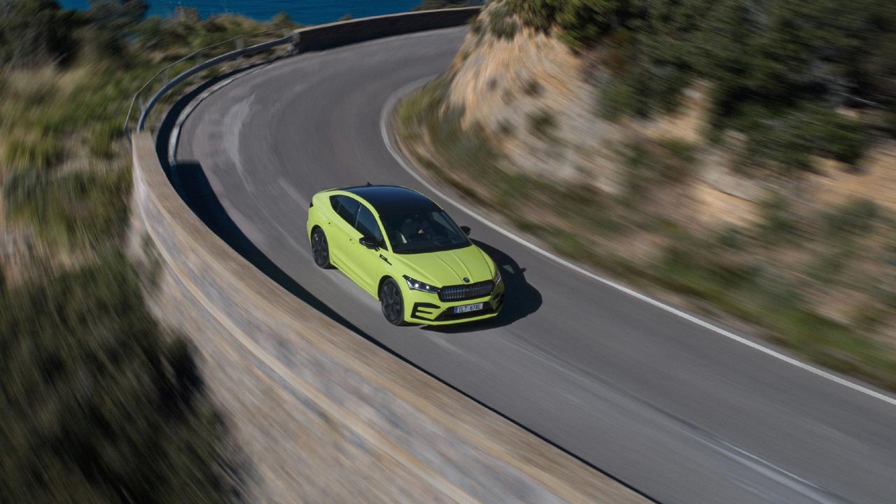 Tο νέο ηλεκτρικό κουπέ με το οποίο συμβιώσαμε επί διήμερο στους ιδιαίτερους, στενούς, και «ελληνικών» προδιαγραφών δρόμους της δυτικής, παραθαλάσσιας πλευράς της Τοσκάνης, είναι επίσης διαθέσιμο ως μοντέλο RS, γεγονός που το καθιστά το πρώτο πλήρως ηλεκτρικό μέλος της οικογένειας RS από την Skoda. Αυτή η παραλλαγή χαρακτηρίζει την κρυστάλλινη μάσκα ως πρότυπο της μάρκας, την οποία φωτίζουν 131 LED. Όσον αφορά το σύστημα κίνησης, δύο ηλεκτροκινητήρες παρέχουν κίνηση σε όλους τους τροχούς και ισχύ συστήματος 299 ίππων, επιτρέποντας μια ιδιαίτερα δυναμική οδηγική εμπειρία.