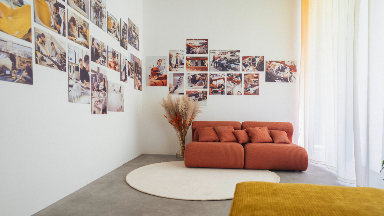 Μεταβαίνοντας στο εσωτερικό της έκθεσης “Future of Joy” by BMW Design, ο επισκέπτης εισέρχεται σε έναν πιο ζεστό κόσμο χρωμάτων με κίτρινους και πορτοκαλί τόνους. Εξερευνώντας τους διαφορετικούς τομείς σχεδίασης, όπως το εσωτερικό και το εξωτερικό, η σχεδίαση χρωμάτων και επενδύσεων, καθώς και ο σχεδιασμός διεπαφής χρήστη και ήχου, ανακαλύπτει πώς οι μέχρι πρότινος ανεξάρτητες κατηγορίες συγχωνεύονται μεταξύ τους και μαζί δημιουργούν μια ολιστική εμπειρία για τον χρήστη.