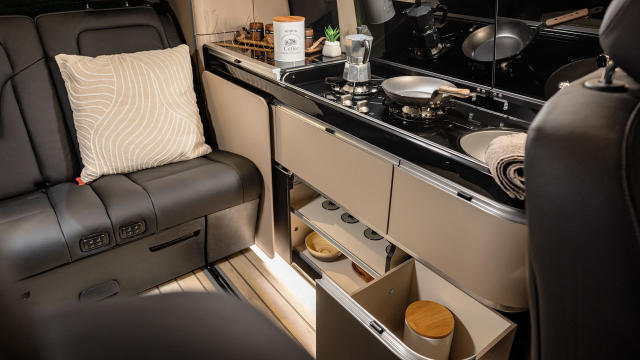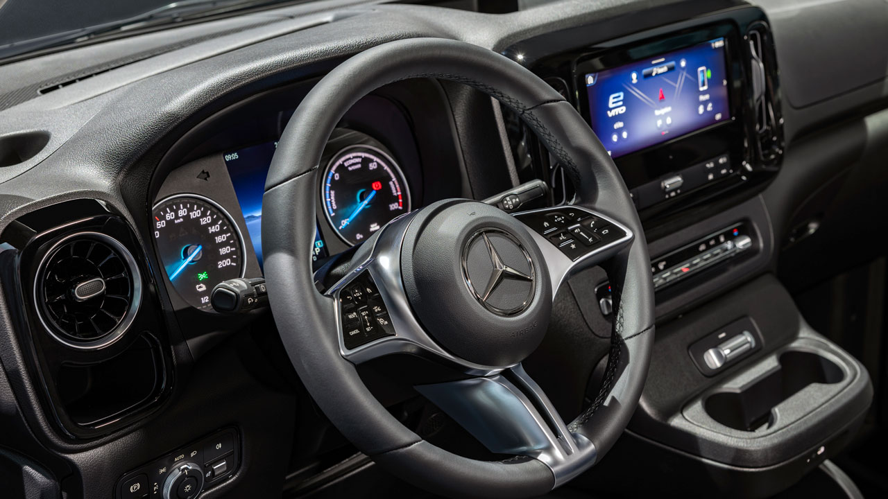 Εντυπωσιακό και άκρως… ψηφιακό είναι και το εσωτερικό των μεσαίων βαν της εταιρείας. Αξιοσημείωτες αλλαγές είναι ο επανασχεδιασμένος πίνακας οργάνων και οι νέοι αεραγωγοί. Στην περίπτωση των EQV, V-Class και V-Class Marco Polo, για πρώτη φορά βλέπουμε δύο οθόνες μεγέθους 12,3 ιντσών. Από την άλλη, τα Vito και eVito είναι εξοπλισμένα με μια κεντρική οθόνη 10,25 ιντσών και σε ρόλο πίνακα οργάνων βρίσκεται μία οθόνη 5,5 ιντσών.