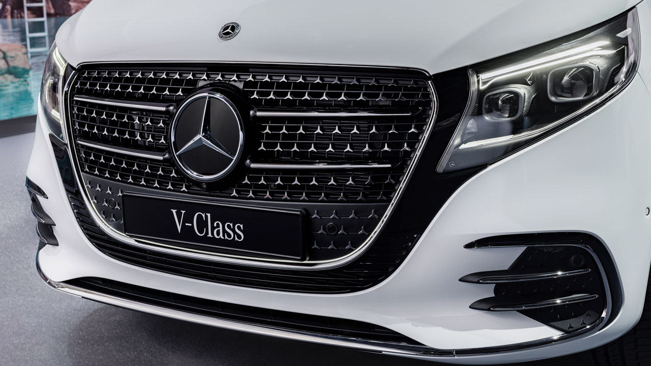 Ξεκινώντας από την εξωτερική εμφάνιση των επαγγελματικών μοντέλων, βλέπουμε πλέον ότι στη μάσκα υπάρχει η δυνατότητα επιλογής των μικρών αστέρων, όπως συμβαίνει και στα επιβατικά μοντέλα της εταιρείας. Επιπλέον, προσφέρονται ανασχεδιασμένα LED φωτιστικά σώματα. Στην περίπτωση των EQV, V-Class και V-Class Marco Polo υπάρχει μία νέα διακοσμητική λωρίδα χρωμίου, ενώ προσφέρονται πλέον και νέες, αεροδυναμικές ζάντες αλουμινίου μεγέθους από 17 έως 19 ίντσες. Επίσης, πέντε νέα χρώματα προστίθενται στην παλέτα.