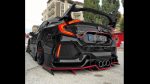 Οι αναφορές στη Lamborghini είναι ιδιαίτερα εμφανείς στο κάλυμμα του πίσω παρμπρίζ που θυμίζει έντονα σύγχρονα αλλά και παλιότερα supercars της ιταλικής εταιρίας. Στα ίδια ακραία επίπεδα κινούνται και οι υπόλοιπες μετατροπές στο Civic με αλλαγές σχεδόν σε κάθε σημείο του αμαξώματος, μπροστά, στο πίσω μέρος αλλά και στο προφίλ. Παράλληλα οι μεγάλες ζάντες μπαίνουν βαθιά μέσα στους θόλους και το μοντέλο της ιαπωνικής εταιρίας μοιάζει να έχει γειωθεί κυριολεκτικά.