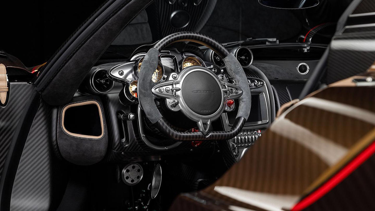 Αυτό που κάνει το συγκεκριμένο Pagani μοναδικό είναι αυτή η βαφή που ενώ δίνει χρώμα στο αμάξωμα, αφήνει την ίδια στιγμή να φανεί σε όλο του το μεγαλείο το ανθρακόνημα, το κυριότερο υλικό κατασκευής του ιταλικού roadster.
