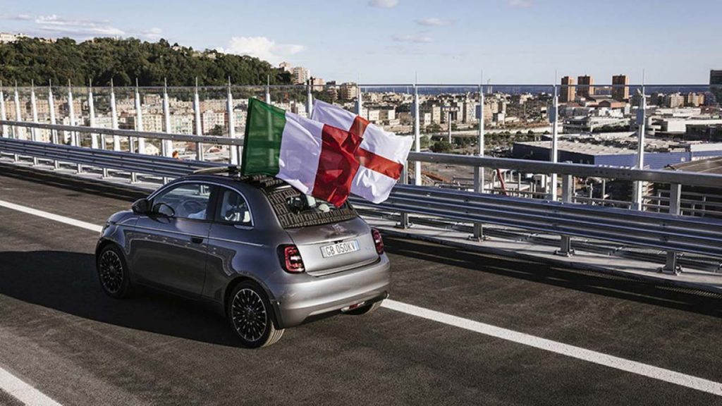 Το ηλεκτρικό Fiat 500 στα εγκαίνια της γέφυρας San Giorgio στη Γένοβα