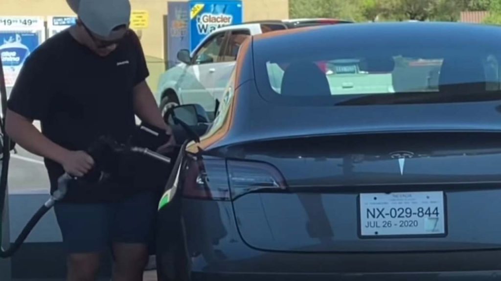 Το να προσπαθείς να βάλεις βενζίνη στο ηλεκτρικό σου αυτοκίνητο σίγουρα είναι τουλάχιστον… αστείο. Αυτό δεν σημαίνει πως πρέπει να γίνεις και video…