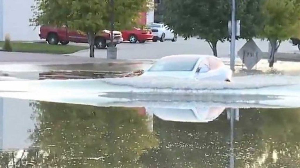 Τα ηλεκτρικά αυτοκίνητα ακόμη είναι σπάνιο θέαμα, επομένως το να περνά ένα ηλεκτρικό αυτοκίνητο μέσα νερό με τέτοιο βάθος είναι είδηση!