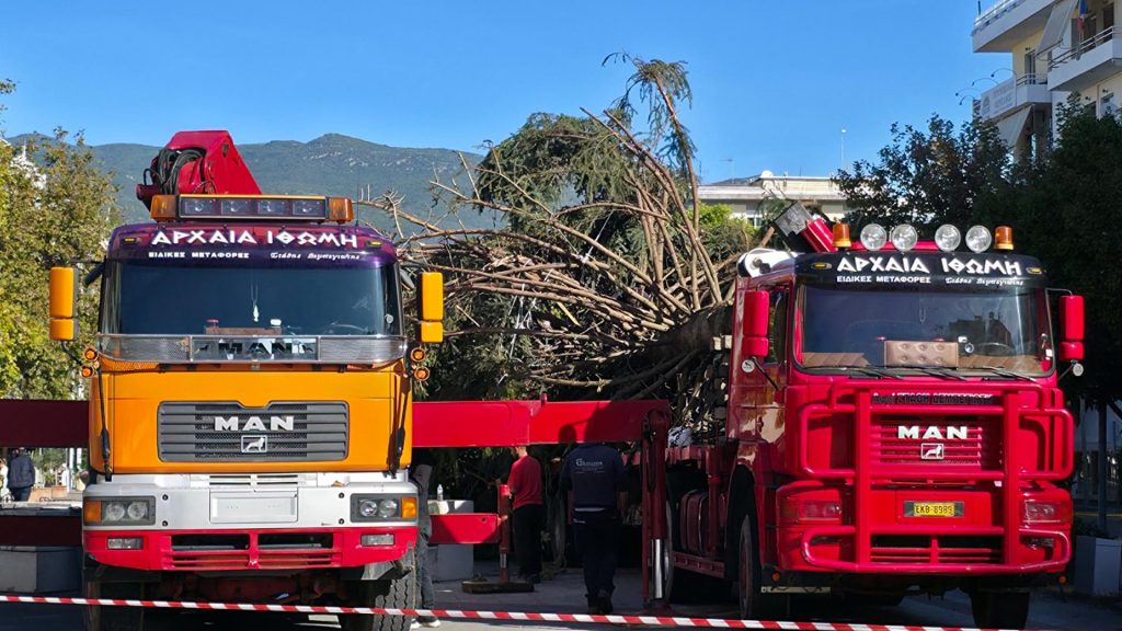 Το φυσικό έλατο, ύψους 14 μέτρων και βάρους περίπου 4,5 τόνων, ξεκίνησε το ταξίδι του από τον Ταΰγετο με προορισμό την Καλαμάτα…