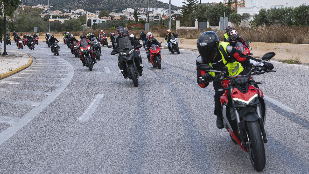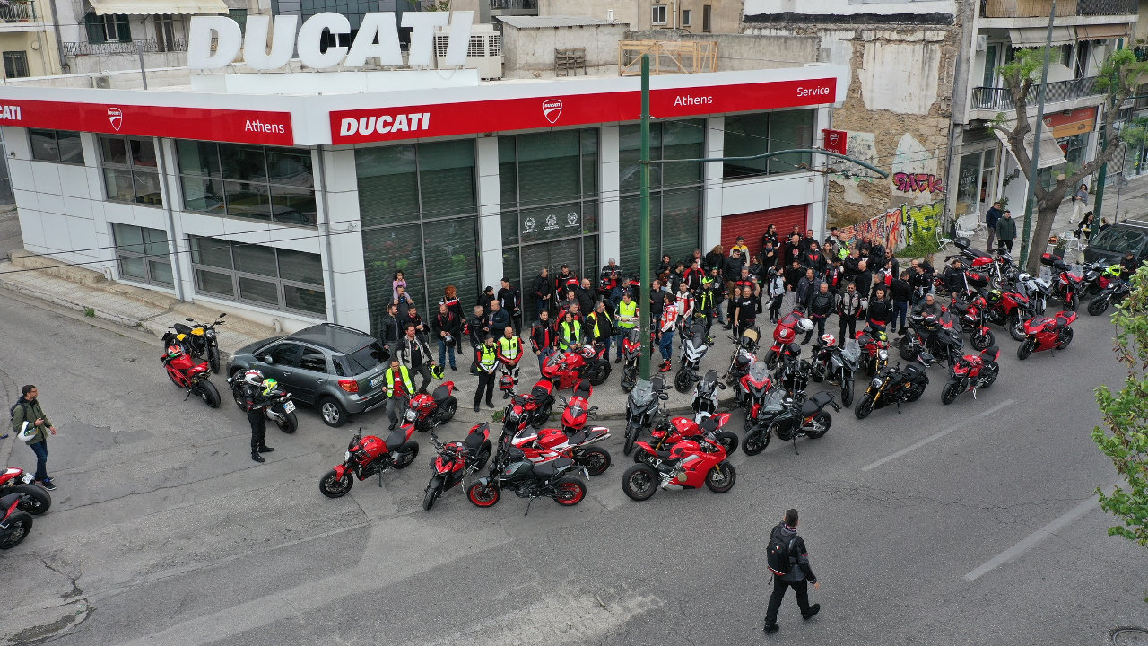 Στην Αθήνα, με αφετηρία το Ducati Athens συγκεντρώθηκε ένα κομβόι από 70 μοτοσικλέτες, περισσότερους από 100 ενθουσιώδεις φίλους της μάρκας και τη συμμετοχή του Ducati Official Club Hellas, πέρασε από τους Στύλους του Ολυμπίου Διός και το Ζάππειο για να κατευθυνθεί στην παραλιακή, διασχίζοντας την Αθηναϊκή ριβιέρα, με τελικό προορισμό την Ολυμπιακή Μαρίνα, στο Λαύριο.