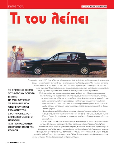 ση έχει ξεκινήσει με το Cougar του 1983. είναι σμιλεμένο αεροδυναμικά, με χυτές γραμμές, ώστε να