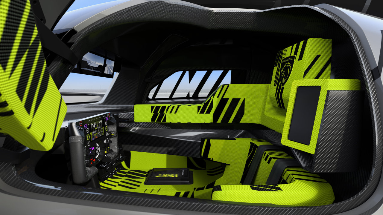 Ένα άλλο χαρακτηριστικό της τεχνογνωσίας και του στυλ της Peugeot είναι εμφανές στην καμπίνα του 9×8, η οποία βασίζεται στο χαρακτηριστικό i-Cockpit της μάρκας. Ακριβώς όπως για ένα πρότζεκτ σειράς μοντέλων παραγωγής, η φροντίδα που δόθηκε στην εσωτερική σχεδίαση συνδυάστηκε με το απαιτητικό επίπεδο προϋποθέσεων για το εξωτερικό: ο οδηγός και οι θεατές μπροστά από τις οθόνες τους πρέπει να αισθάνονται σαν να βρίσκονται σε ένα Peugeot χωρίς να υπάρχει καμία απολύτως αμφιβολία. Επιπλέον, ολόκληρο το cockpit του 9×8 σχεδιάστηκε για να παρέχει τον υψηλότερο βαθμό εργονομίας και διαισθητικότητας για τους οδηγούς.