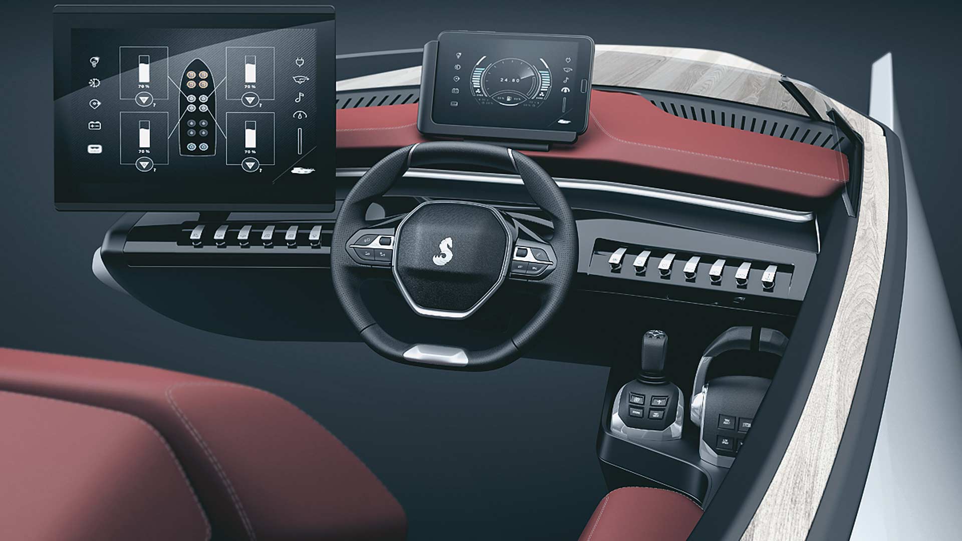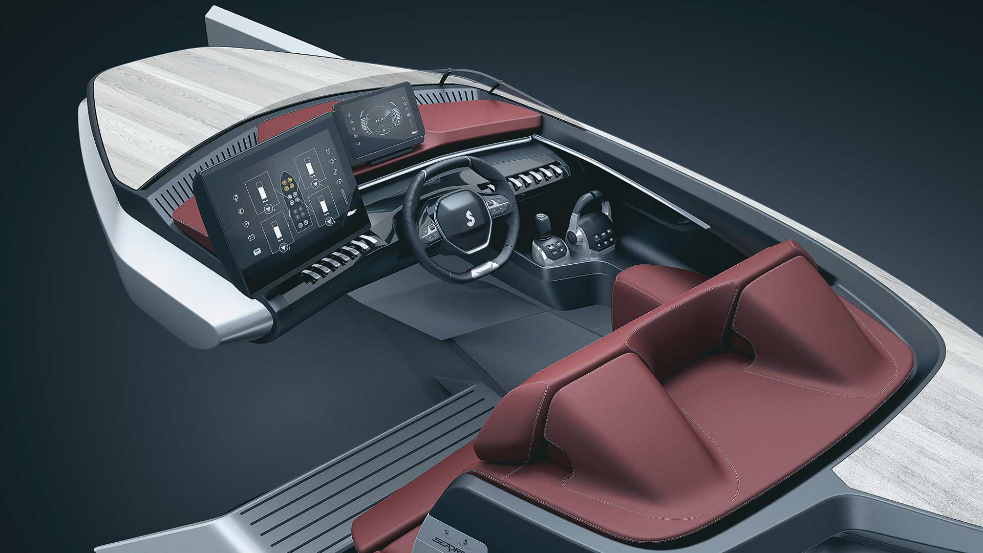 Η παγκόσµια ηγέτιδα στην κατασκευή σκαφών, Beneteau, θέλησε να δοκιµάσει το i-Cockpit και στη θάλασσα και για αυτό τον λόγο συνεργάστηκε µε την Peugeot. Το αποτέλεσµα είναι το Sea Drive Concept, ένα ταχύπλοο που προσφέρει µία νέα ναυτική εµπειρία και παντρεύει δύο κόσµους, της θάλασσας και της ξηράς. Για την επιτυχία του εγχειρήµατος, το i-Cockpit της Peugeot συνδυάστηκε µε το σύστηµα Beneteau Ship Control, προσφέροντας στο Sea Drive Concept χαρακτηριστικά από τα αυτοκίνητα Peugeot: Το σκάφος έχει µικρό τιµόνι, εµπνευσµένο από το i-Cockpit, και έτσι ο χειρισµός του γίνεται πιο εύκολος, πιο άµεσος και πιο διασκεδαστικός.