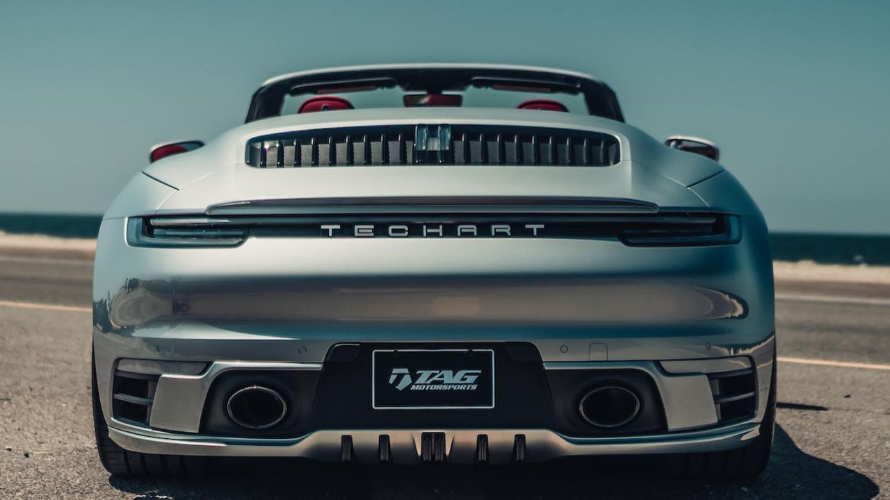 Στα πλαινά τμήματα έχουν τοποθετηθεί νέες ποδιές που μειώνουν την απόσταση από το έδαφος, αλλά και οι ζάντες Techart Formula V. Οι πιο εντυπωσιακές αλλαγές, βέβαια, έχουν γίνει στο πίσω μέρος. Εκεί συναντάμε νέο διαχύτη αλλά και δύο τεράστιες απολήξεις. Όσο για το σύστημα εξάτμισης, είναι κατασκευασμένο εξ’ ολοκλήρου από τιτάνιο, με την TechArt να ισχυρίζεται 40% μείωση του βάρους συγκριτικά με το εργοστασιακό.