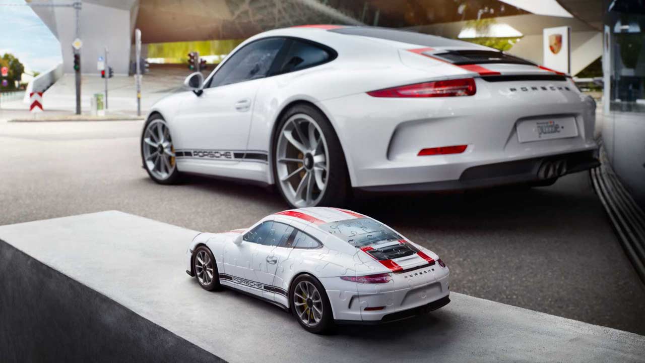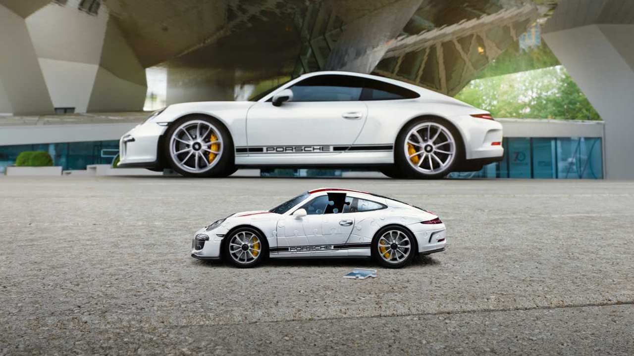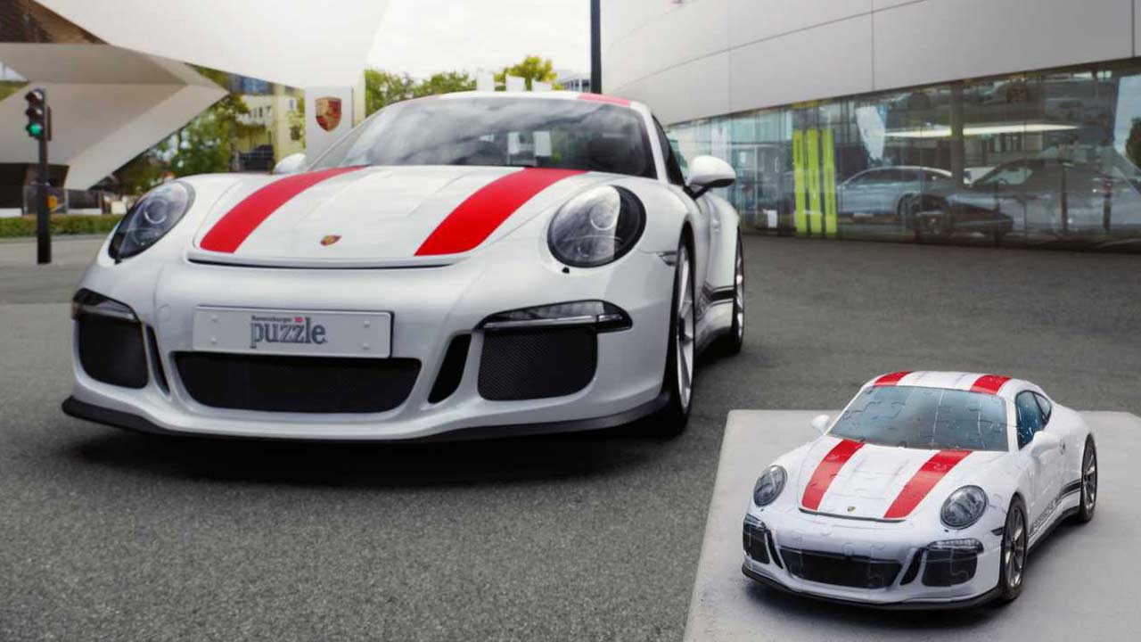 Και όμως υπάρχουν και κάποια puzzle με τα οποία θα μπορούσαμε με ευχαρίστηση να ασχοληθούμε. Ένα από αυτά είναι και το 3D puzzle της εταιρείας Ravensburger, το οποίο απεικονίζει την Porsche 911 R.