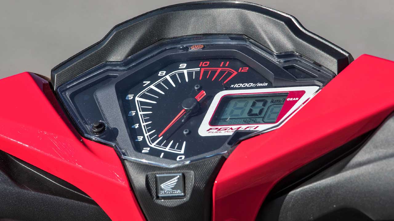 Τέλος, ο εξοπλισμός του περιλαμβάνει προβολέα LED, πίνακα οργάνων με αναλογικό στροφόμετρο με ψηφιακές ενδείξεις ταχύμετρου, δείκτη στάθμης καυσίμου, ένδειξη σχέσης κιβωτίου ταχυτήτων και μερικού χιλιομετρητή.