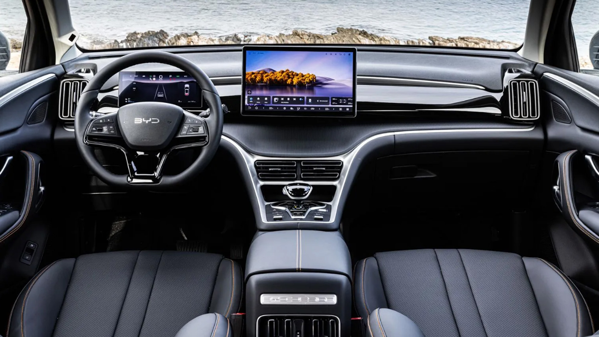 Ο ψηφιακός πίνακας οργάνων 8,8” προσφέρει καθαρή και ευανάγνωστη πληροφόρηση, ενώ η μεγάλη οθόνη αφής 12,8” φιλοξενεί το σύστημα infotainment της BYD με γρήγορη απόκριση και σύγχρονη λογική λειτουργίας. Η πρόσβαση μέσω smartphone με NFC και η δυνατότητα Vehicle-to-Load (V2L) ενισχύουν τον high-tech χαρακτήρα του μοντέλου.
