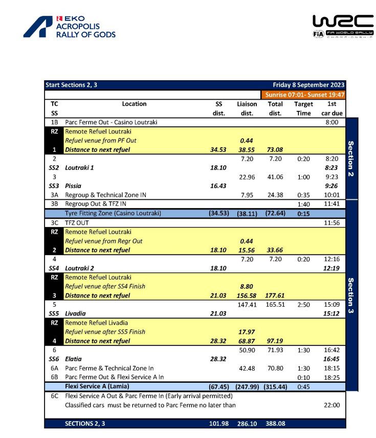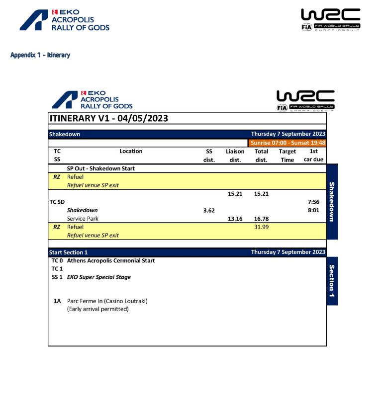 Η εκκίνηση του αγώνα θα πραγματοποιηθεί στις 7 Σεπτεμβρίου κάτω από τον ιερό βράχο της Ακρόπολης. Μετά την εκκίνηση και τη διεξαγωγή μίας υπερειδικής διαδρομής (θα ανακοινωθεί σε επόμενη ενημέρωση), τα πληρώματα θα διανυκτερεύσουν στο Λουτράκι, από όπου θα ξεκινήσουν το καθαρά αγωνιστικό μέρος το πρωί της Παρασκευής, με τις ε.δ. “Λουτράκι” και “Πίσια”. Το πέρασμα στις ειδικές διαδρομές της Στερεάς Ελλάδας και στη Λαμία θα γίνει μέσω της ειδικής διαδρομής “Λιβαδειά”, που κέρδισε συμμετέχοντες και θεατές πέρυσι, και εν συνεχεία μέσω της μεγάλης εκδοχής της ε.δ. “Ελάτεια”, που με μήκος 28,32 χλμ. θα τερματίζει πριν το Ρεγκίνι.
